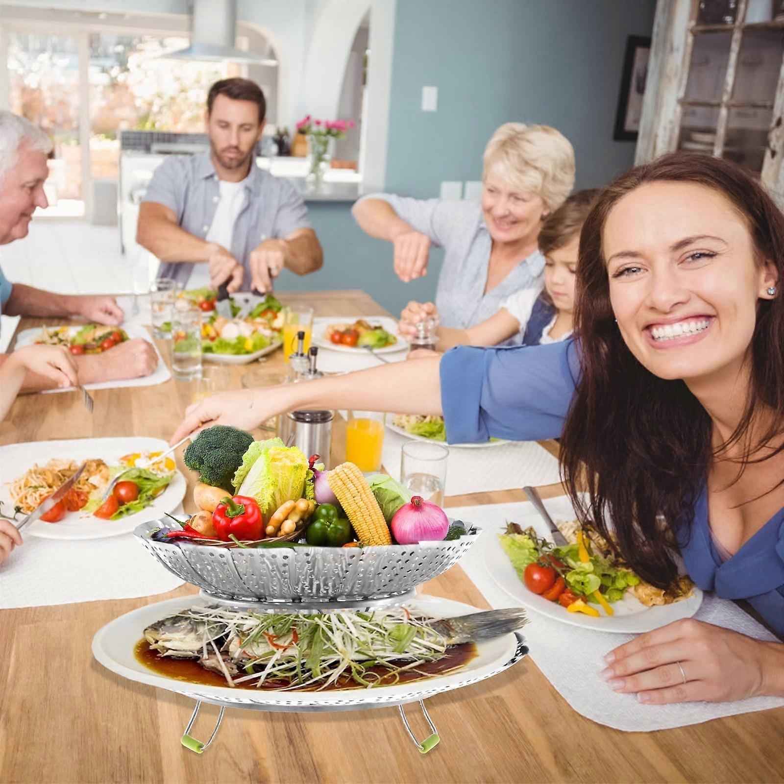 2Pcs 2-Layer Vegetable Steamer Basket, Stainless Steel with Removable Handle, Multifunctional Rack for Seafood, Fish, Dumplings