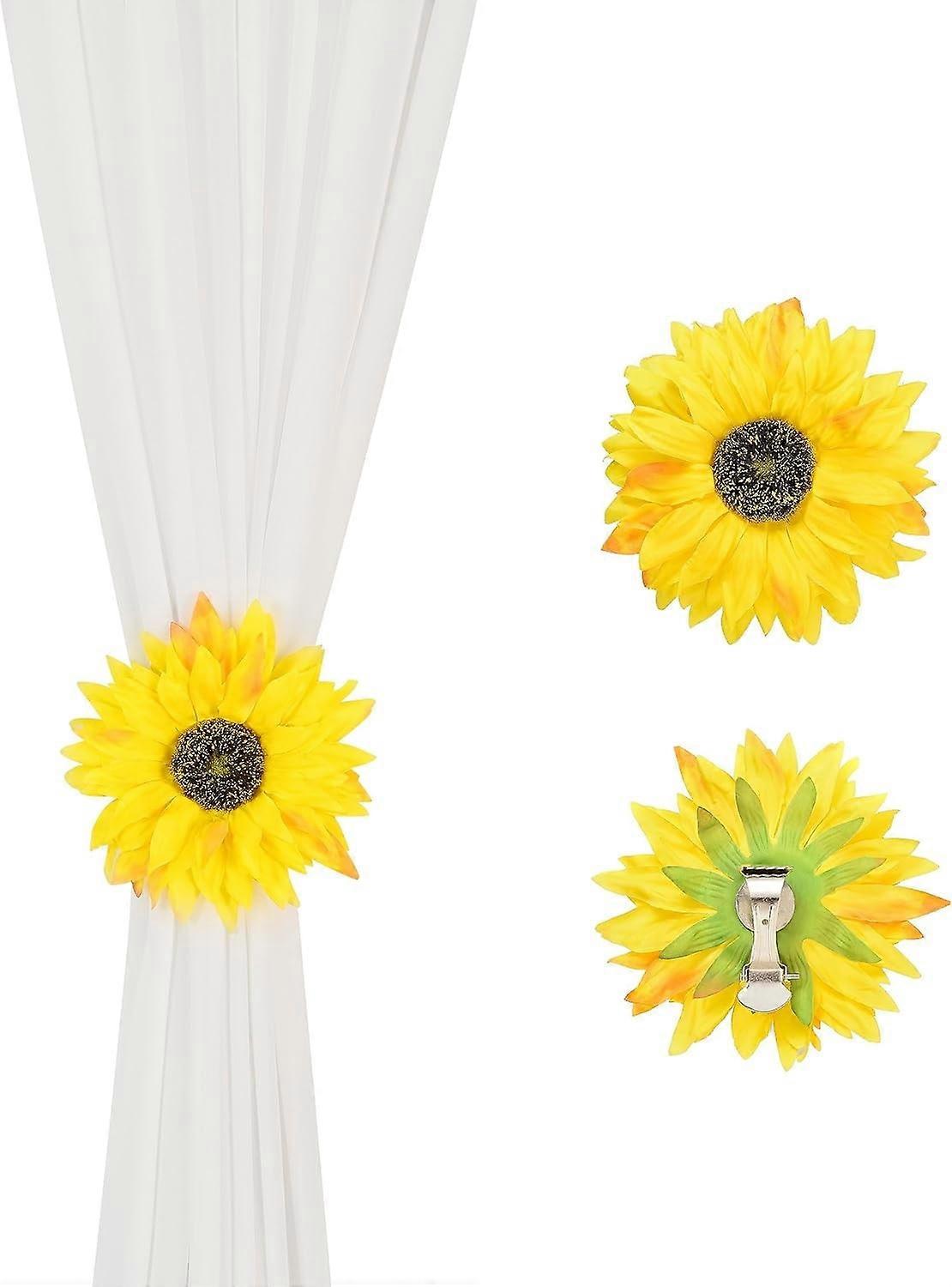 Walkfairy 2 Pcs Rustic 7.08" Artificial Sunflower Curtain Clips, Bright Yellow, compatible with standard curtains, for Home Office Decor