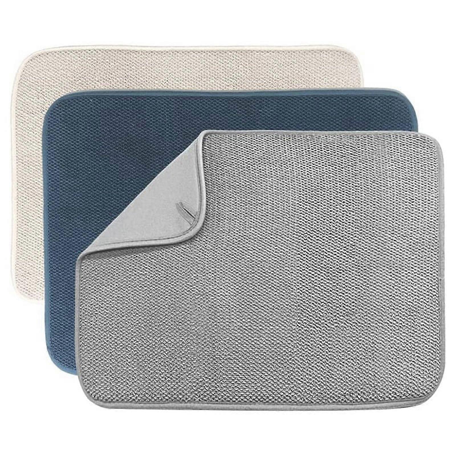 3 Pack Dish Drying Mat,Absorbent Microfiber Dishes Drainer Mats for Kitchen Counter Size 20x15 Inch,Dish Pad