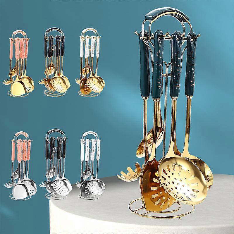 steel color black handle - line pattern 7-piece set (gift box) Nordic thick stainless steel soup spoon colander frying pan spatula cooking spatula