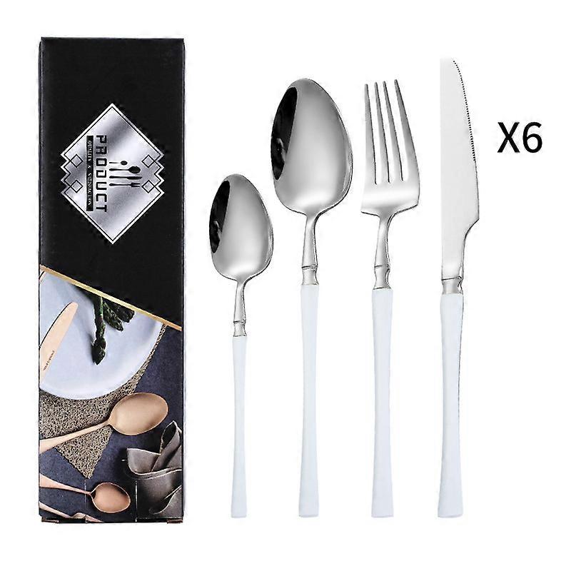 Small Waist - Silver (Toothpaste Box) 24-piece stainless steel cutlery set, knife and fork, small waist four-piece set of knife and fork dessert