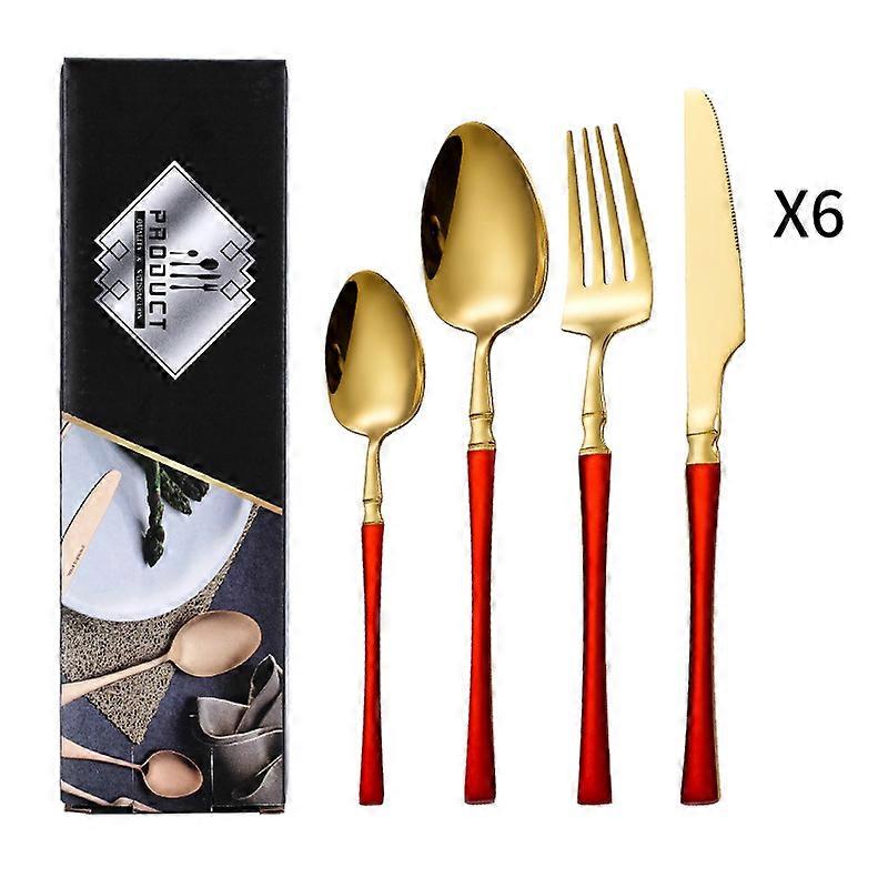 Small Waist - Red (Toothpaste Box) 24-piece stainless steel cutlery set, knife and fork, small waist four-piece set of knife and fork dessert spoon