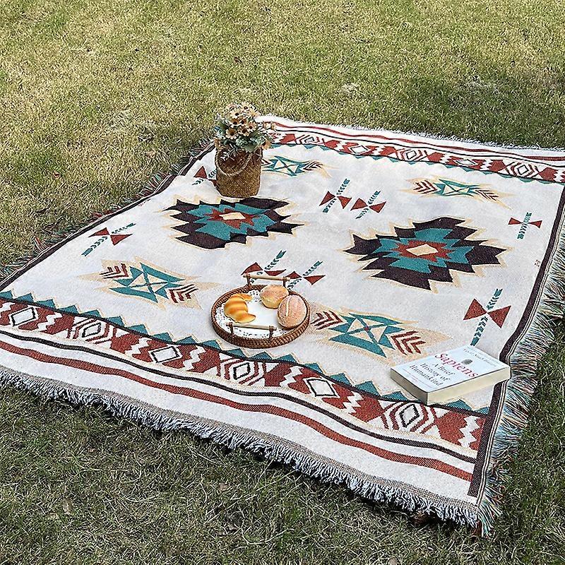 Sucre [Multi-function Cover] 90*90cm Bohemian Picnic Mat Cotton Yarn Tassel Multi-function Camping Blanket Outdoor Fireside Tea Camping Holiday