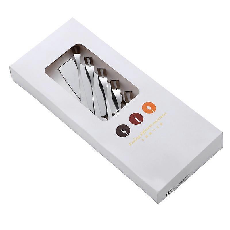 Cake Shovel Two-tooth Fork Color - White Box Stainless Steel Cake Shovel Bread Knife Dessert Spoon Birthday Decoration Cake Knife and Fork Plate