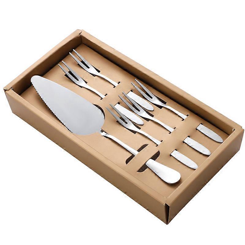Cake Shovel Two-tooth Fork Color - Brown Box Stainless Steel Cake Shovel Bread Knife Dessert Spoon Birthday Decoration Cake Knife and Fork Plate