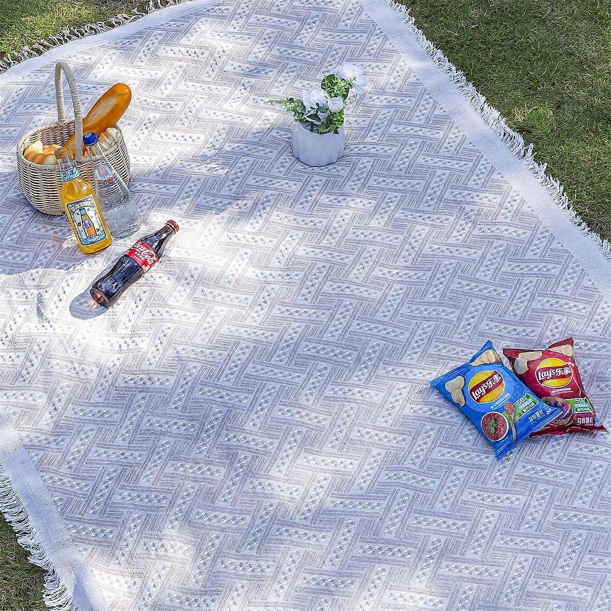 Picnic Mat - Milk Coffee T Grid (High Quality Cotton Yarn) 130*130cm Outdoor Picnic Mat Linen Tablecloth Camping Blanket Atmosphere Tablecloth Picnic Mat Picnic Car Trunk Mat