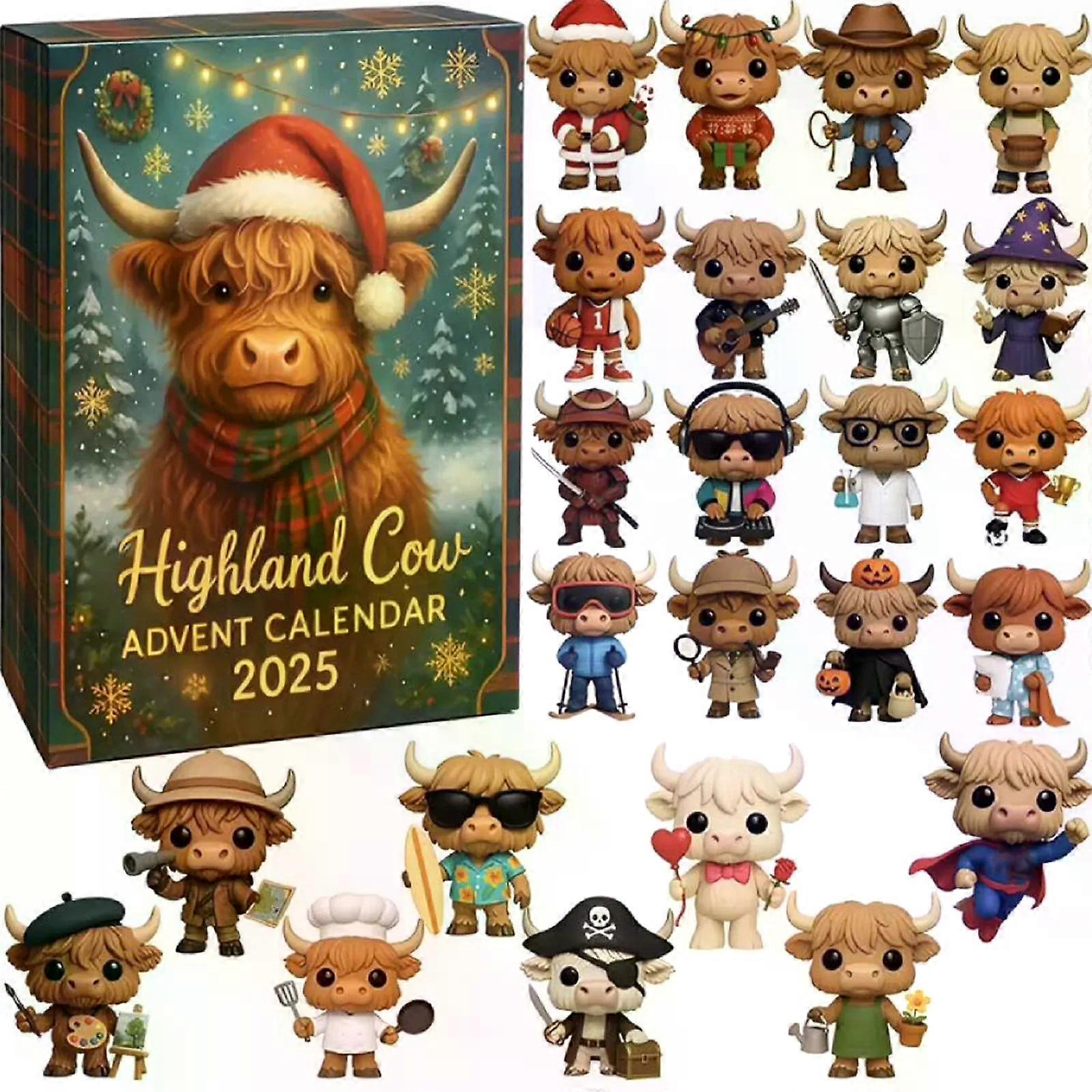 3D Highland Cow Christmas Advent Calendar with 24 Highland Cow Figurines Xmas Countdown Calendar ornamentdecoration kid Gifts