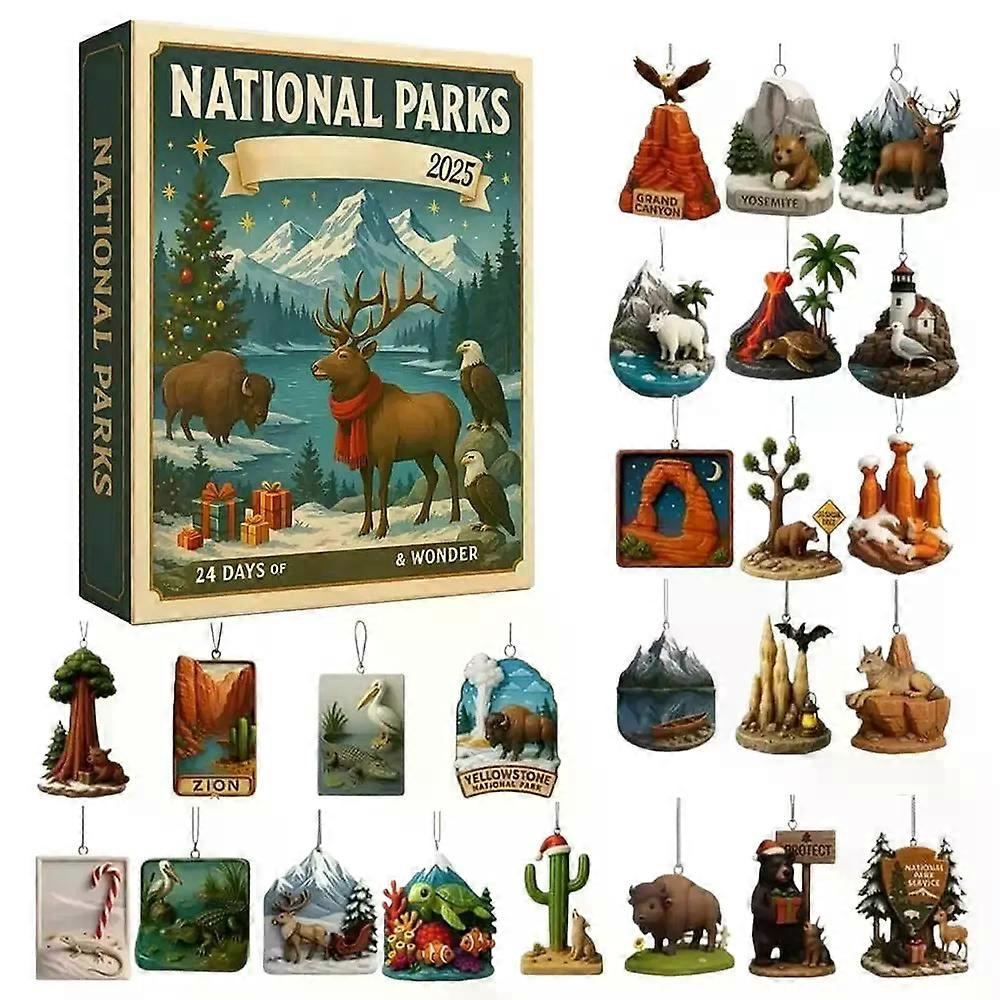 Christmas Ornament Countdown Cute Acrylic Calendars with 2D Flat Figures Toys 24 Day Festive Decor with National Parks Themes
