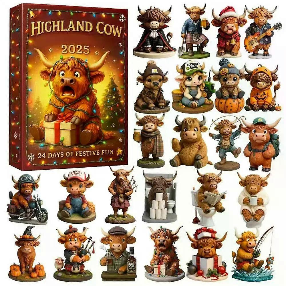3D Christmas Advent Calendar 24 Days Highland Cow Countdown Home Ornament Christmas Gift 2025 Xmas Navidad Party Supplies