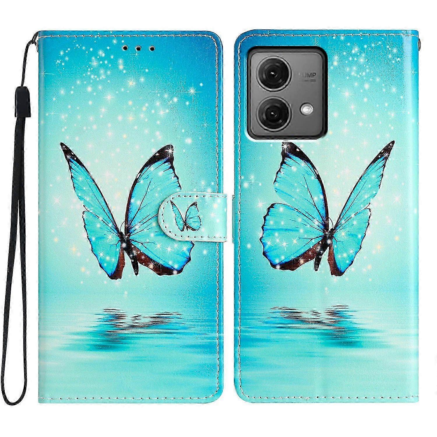 For Motorola Moto G84 5G Leather Case Wallet Cover with Card Slot Holder Stand - Blue Butterfly(Best Seller)