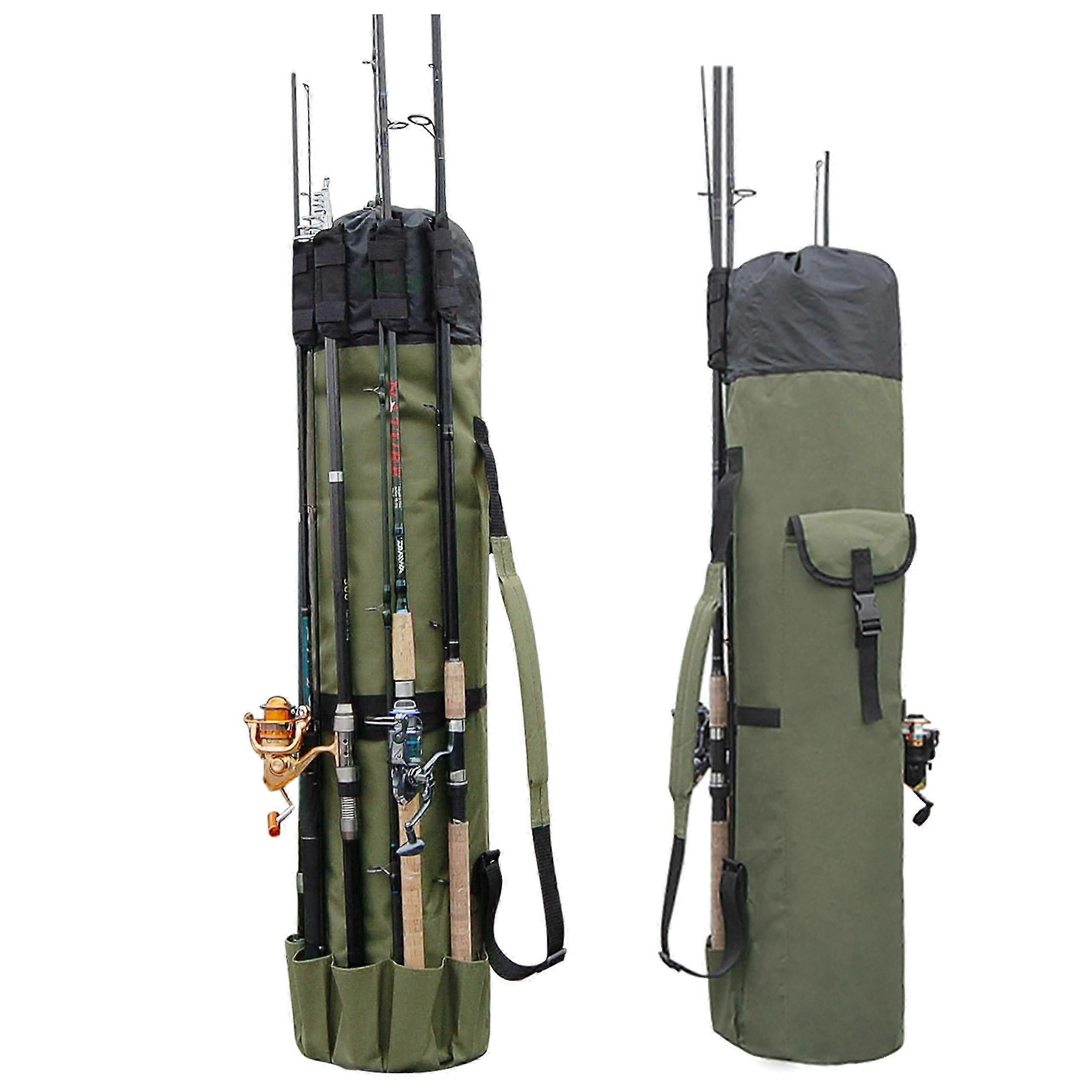 5-Rod Fishing Rod Travel Carry Case in Khaki Green, Large Capacity Storage for Tackle and Fishing Equipment