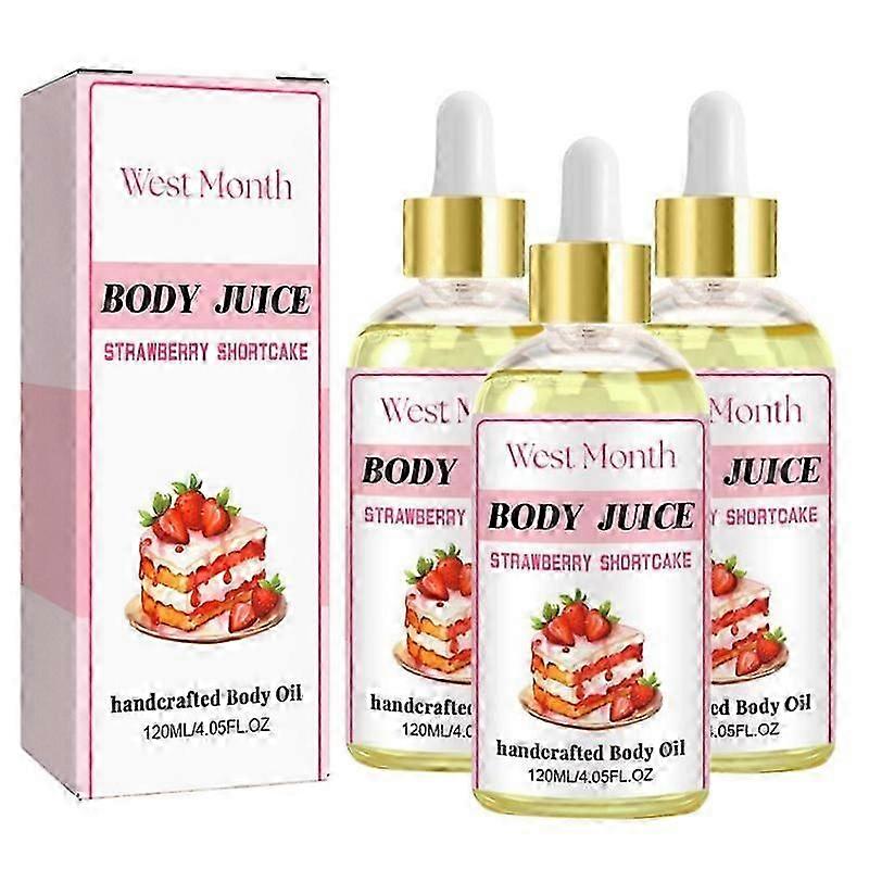 3-Pack Strawberry Scented Body Oil for Women - 120ml Skin Tightening Massage Treatment with Fresh Fragrance