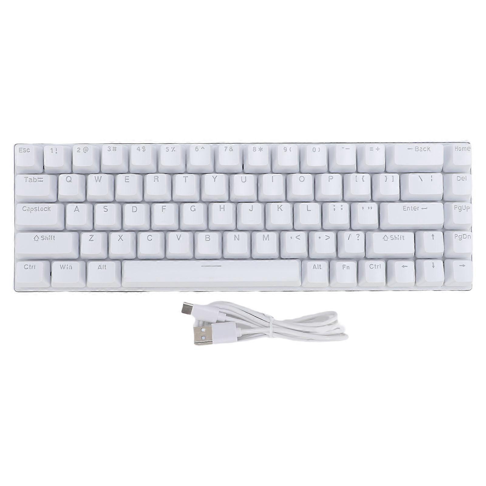 Introducing the 68 Key Wired Mechanical Keyboard, a perfect blend of performance and style designed for gamers and professionals alike. This compact keyboard features a range of advanced functionalities that enhance your typing and gaming experience. Mechanical Blue Switch: Experience the satisfying tactile feedback of the mechanical blue switch, which produces a distinct click sound upon activation. This feature not only provides optimal typing accuracy but also enhances your gaming performance, making every keystroke feel responsive and precise. Compact 60% Layout: The 68 key design maximizes your desk space while maintaining a functional layout. With standalone arrow keys, this portable keyboard is perfect for both gaming and work environments. Its compact size allows for easy transport, making it an ideal choice for gamers on the go. RGB Backlight Effects: Elevate your setup with vibrant RGB backlight options. This keyboard allows for seamless switching among various lighting effects, with adjustable brightness and lighting speeds to suit your mood. The dual color keycaps ensure that characters remain easily recognizable, even in low light conditions, enhancing your overall experience. Ergonomic Design: Comfort is key during long gaming or typing sessions. This wired gaming keyboard features curved keycaps and a stepped layout that reduces fatigue, allowing you to play or work for hours without discomfort. The 60% compact design ensures that you can enjoy both portability and comfort. Wide Compatibility: Connecting this mechanical keyboard to your devices is a breeze. It easily connects to desktops, PCs, and laptops via a USB cable, and is compatible with Windows, OS X, and Android systems. The stable USB cable transfer method ensures a reliable connection, while the removable cable makes it easy to carry wherever you go. Anti-Ghosting Technology: Enjoy a seamless gaming experience with the anti-ghosting technology that supports all 68 keys. This no conflict design allows multiple keys to be pressed simultaneously without interference, ensuring quick and responsive gameplay, so you can focus on winning. Upgrade your gaming and typing experience with the 68 Key Wired Mechanical Keyboard. Its combination of advanced features, ergonomic design, and stylish aesthetics make it a must-have for any gamer or professional looking to enhance their setup.