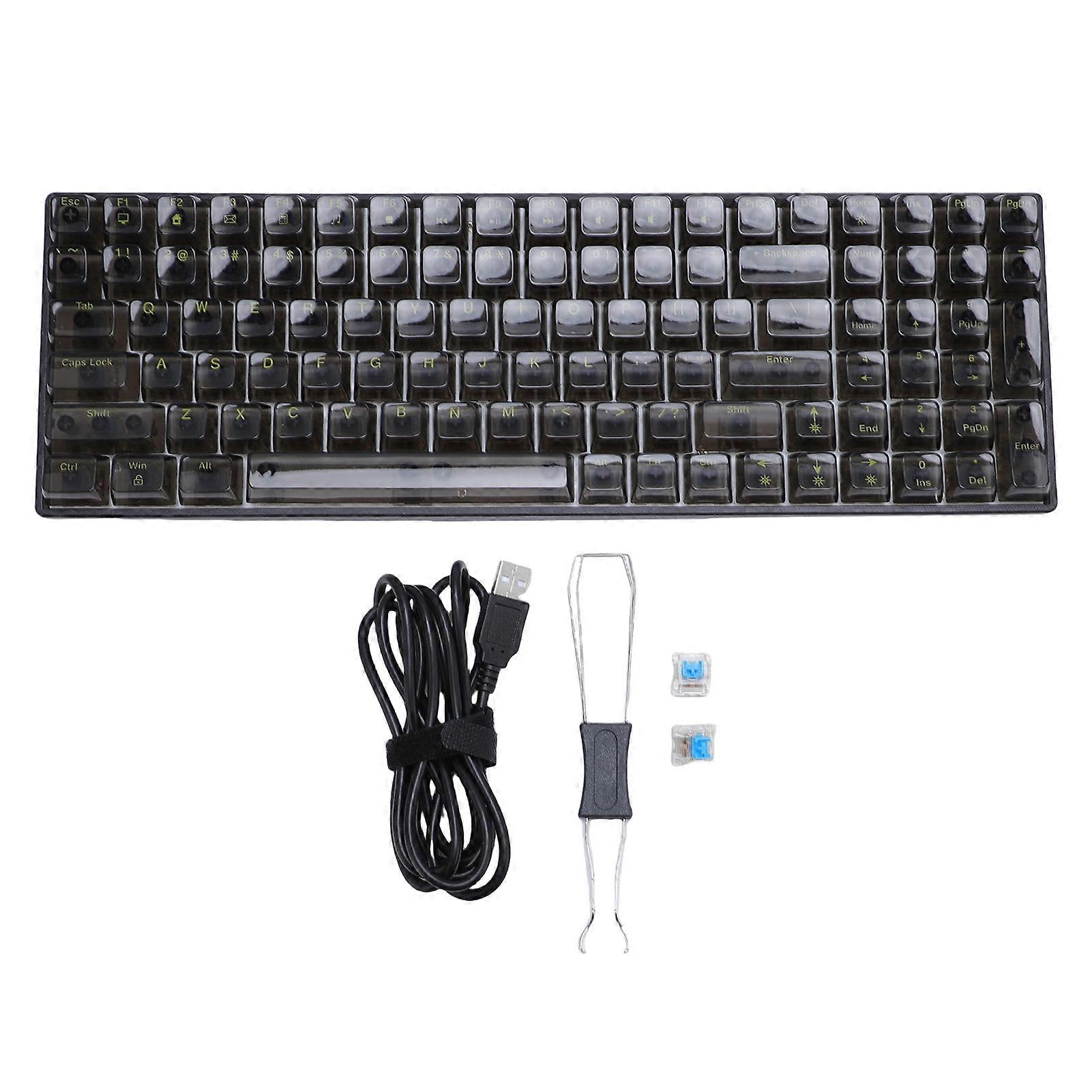 Product Description: Mechanical Keyboard 18 RGB Backlit Modes Ergonomic Design Blue Switch 100 Keys Wired Gaming Keyboard for Home Transform your gaming and typing experience with our Mechanical Keyboard, designed for both performance and style. This wired gaming keyboard features 100 keys, 18 customizable RGB backlight modes, and an ergonomic design, making it the perfect addition to your home setup. Key Features: Mechanical Blue Switch Experience the satisfying click of our excellent mechanical blue switches. Each keystroke produces a distinct sound, providing tactile feedback that enhances both gaming and typing accuracy. These switches are built to last, ensuring durability even during the most intense gaming sessions. Enjoy a responsive typing experience that caters to gamers and typists alike. Compact Full Size Layout Designed with a 96% layout, this RGB backlit keyboard retains all essential 100 keys in a compact form. This design ensures stability and durability while maximizing your desk space. Whether you’re gaming or working, this robust keyboard is perfect for any environment, allowing you to maintain functionality without clutter. Customizable RGB Backlighting Elevate your gaming setup with 18 customizable RGB backlight modes and 8 solid color options. Adjust the brightness and lighting speed to create a personalized aesthetic that reflects your style. This mechanical gaming keyboard not only enhances your gaming experience with vibrant lighting effects but also allows you to express your individuality. Hot Swappable Switches Enjoy the flexibility of hot swappable switches, enabling you to easily replace or change mechanical switches based on your preferences. Whether you prefer blue, brown, or red switches, you can customize your keyboard for an optimal gaming and typing experience. The included keycap puller and spare blue switches make the swapping process simple and enjoyable for enthusiasts. Ergonomic Design and Wide Compatibility Experience enhanced comfort during long gaming or work sessions with the adjustable height provided by two ergonomic feet. This thoughtful design reduces hand fatigue and ensures a comfortable typing angle. The keyboard connects via USB cable to desktops, PCs, and laptops, and is compatible with Windows, OS X, and Android. Enjoy plug-and-play convenience without the need for drivers or software installation. The detachable USB cable also facilitates easy portability, making it ideal for gamers on the go. Conclusion The Mechanical Keyboard with 18 RGB Backlit Modes and Ergonomic Design is the ultimate choice for gamers and professionals seeking performance, style, and comfort. Upgrade your setup today and enjoy a keyboard that meets all your gaming and typing needs!