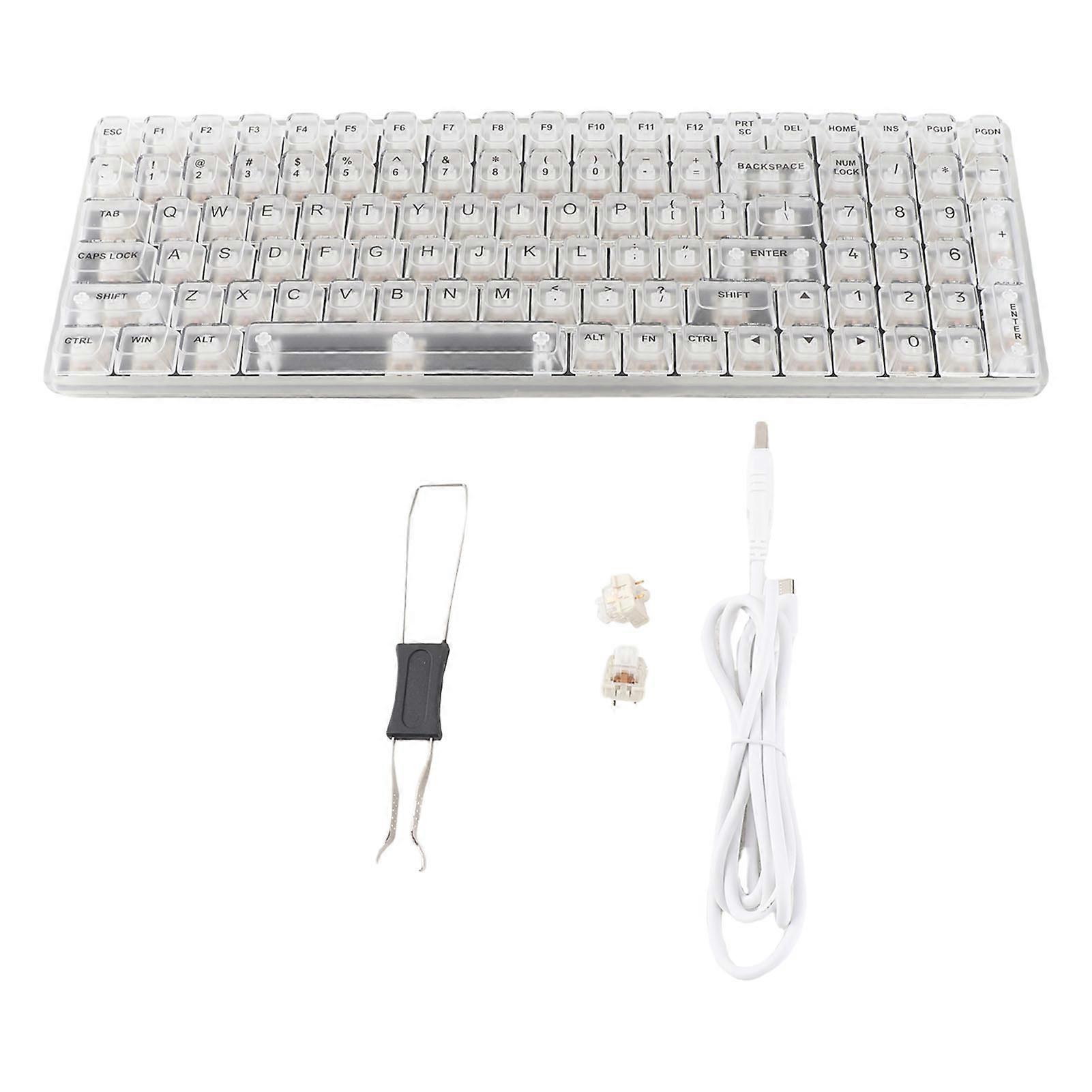 Product Description: Mechanical Gaming Keyboard 100 Keys Transparent Keycaps White Switches Hot Swappable RGB Backlit USB Wired Keyboard