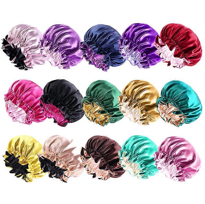 Women Double Layer Satin Bonnet – Reversible Nightcap for Hair Protection, Prevent Frizz & Breakage, Elastic Sleep Hat for Night Care & Home Use