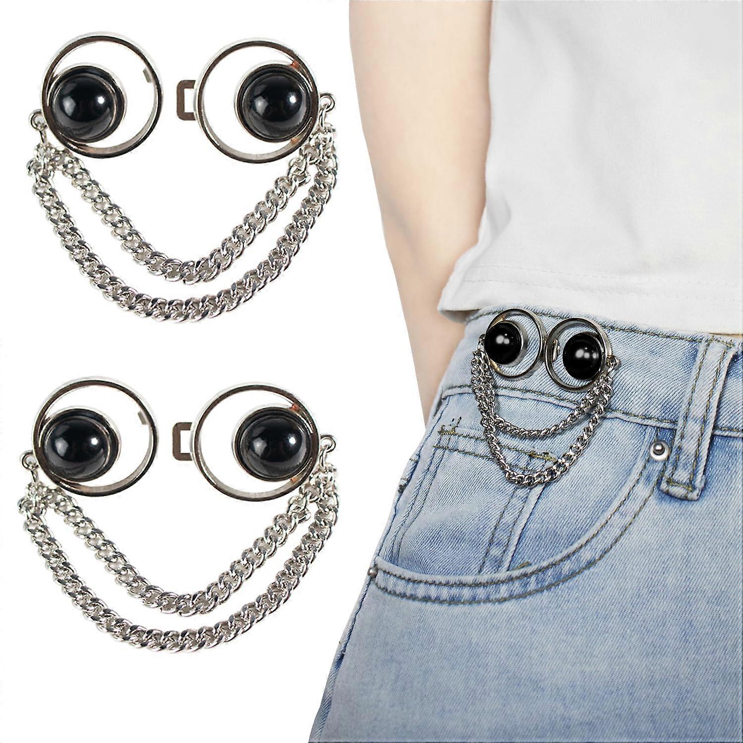 ZENGO 2 Pair Waistband Tightener, Smiling Face Waist Tightener for Trousers, No Sew Pants Tightener, Adjustable Waist Buckle Extender(Black Pearl)