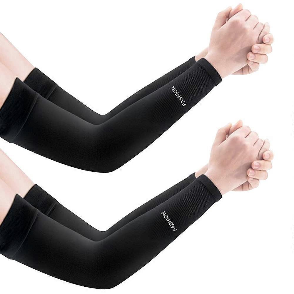 ZENGO 2 Pairs Arm Sleeves UV Protection Cooling Arm Cover UPF 50 Sun Sleeves Unisex Cooling Arm Gloves Compression Sleeves (Black)