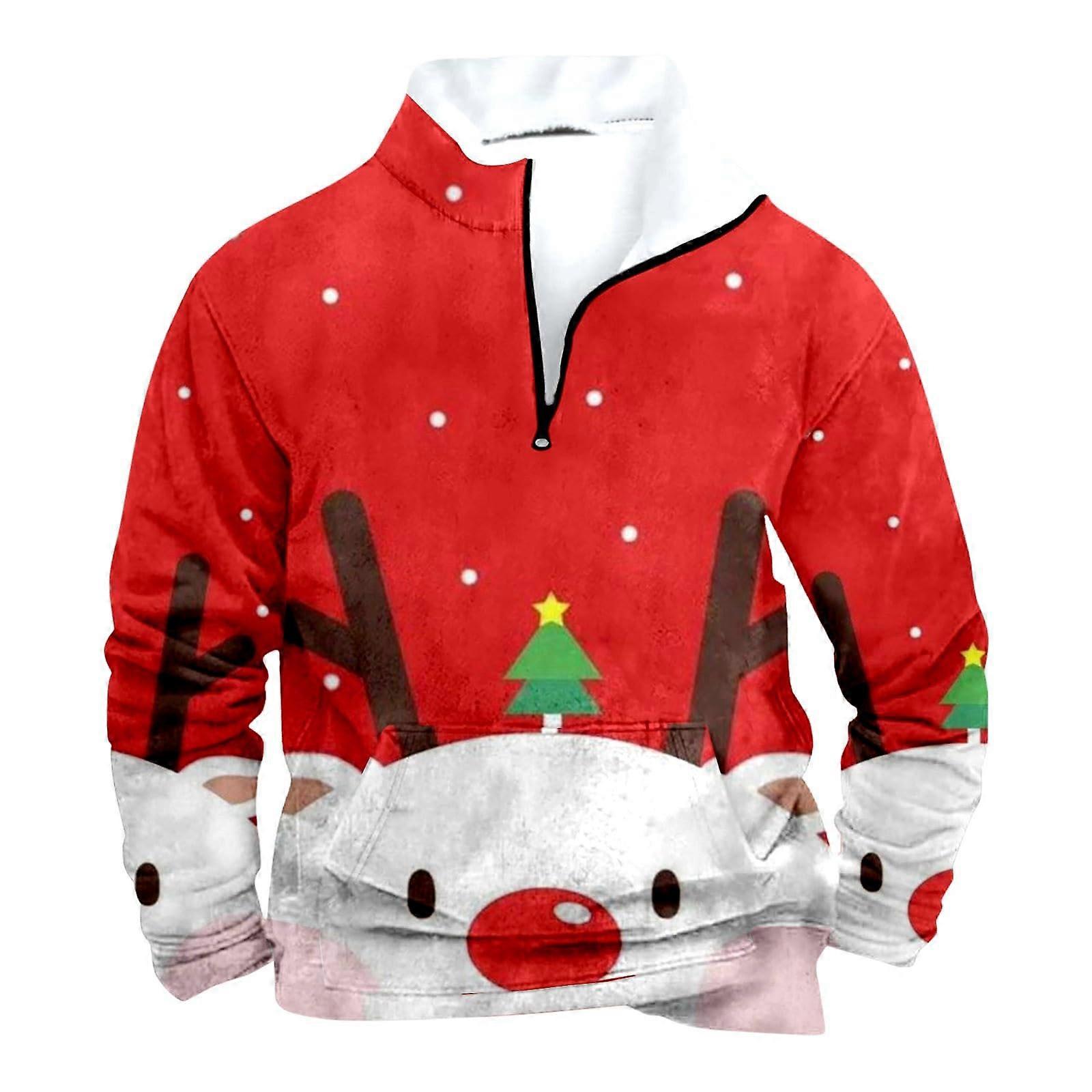 Men's Casual Christmas Jumper 1/4 Zip Breathable Funny Print Dark Purple Size L Regular Fit Turtleneck Hip Hop Streetwear