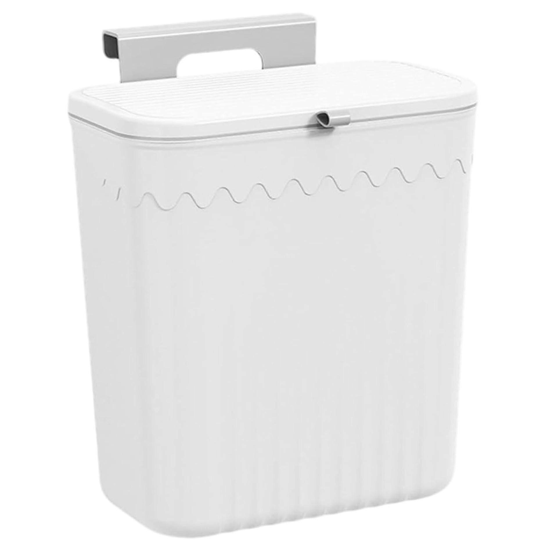 Hanging Trash Can Plastic Wall Mounted Food Waste Bin With Leakproof Lid Wide Mouth For Kitchen Cabinet Door White