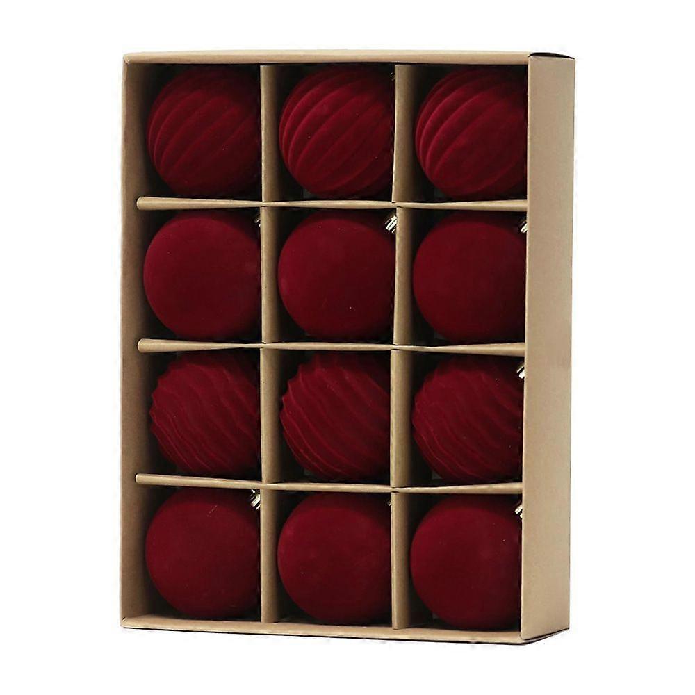 Burgundy Velvet Christmas Ornaments Balls Flocked Christmas Tree 12PCS Plastic