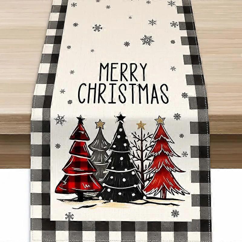Christmas Poinsettias Leaves Bells Snowflakes Winter Xmas Table Runner Table