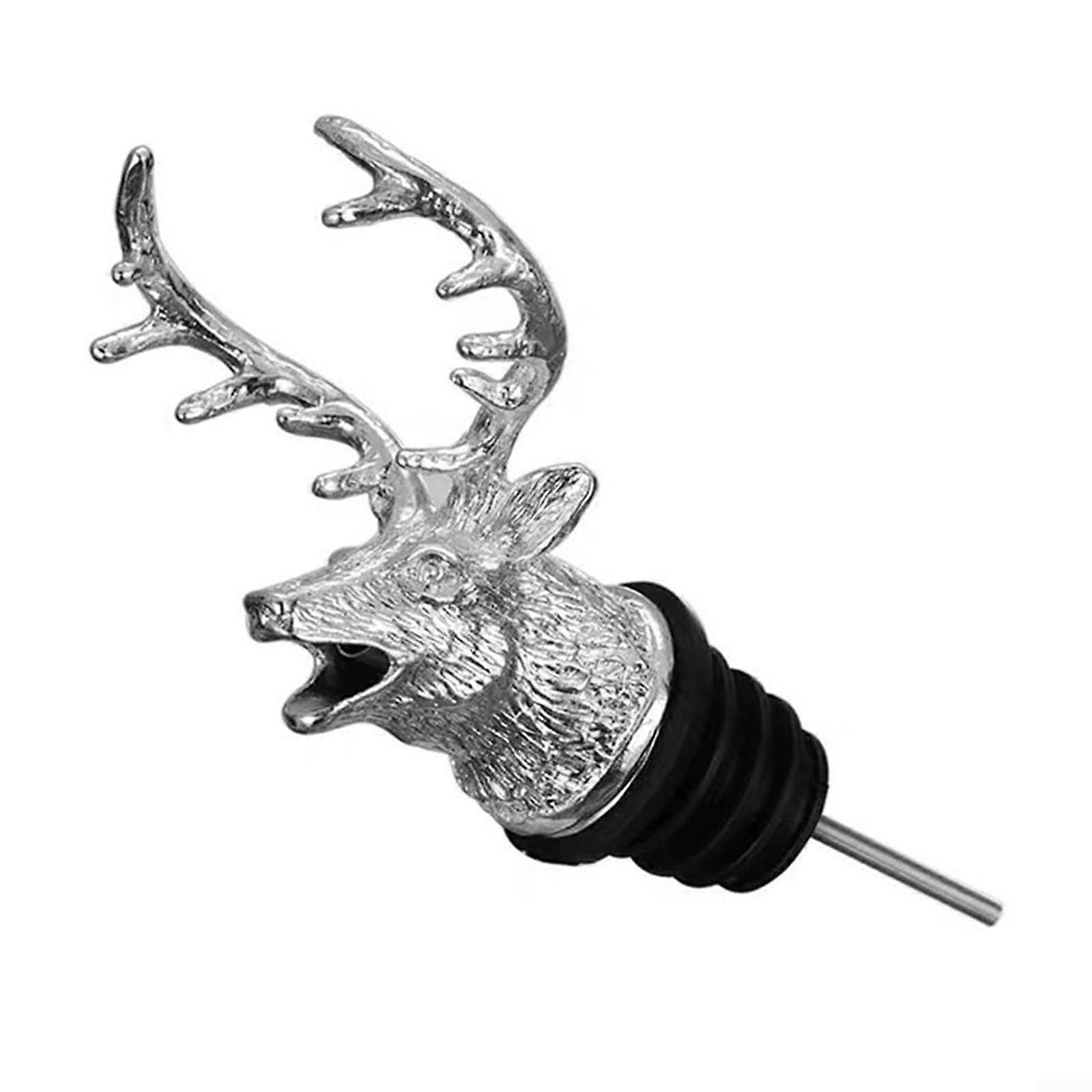 Deer Head Wine Pourer Zinc Alloy And Silicone Silver For Standard Wine Bottles
