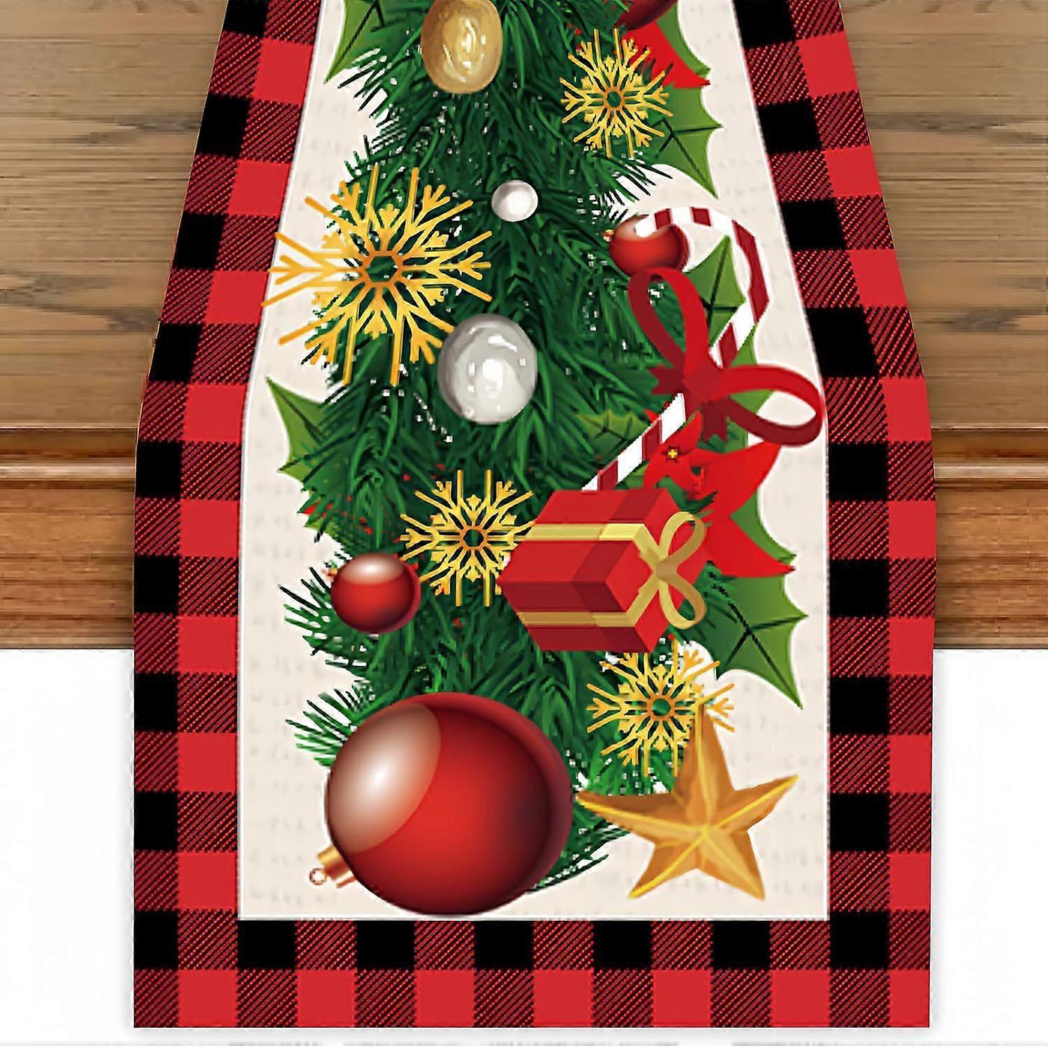 Christmas Poinsettia Table Runner Red Floral Pine Branch Seasonal Winter Holiday