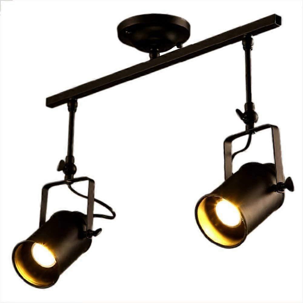 E27 Spotlight Loft Track Light, Vintage Retro Industrial Rail Lamp, Metal Body, Black Finish, Long Pole LED Fixture