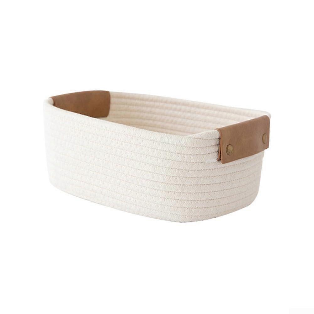 Cotton Rope Storage Basket Desktop And Bedroom Leather Handles White Size L Portable Toy And Small Item Organizer