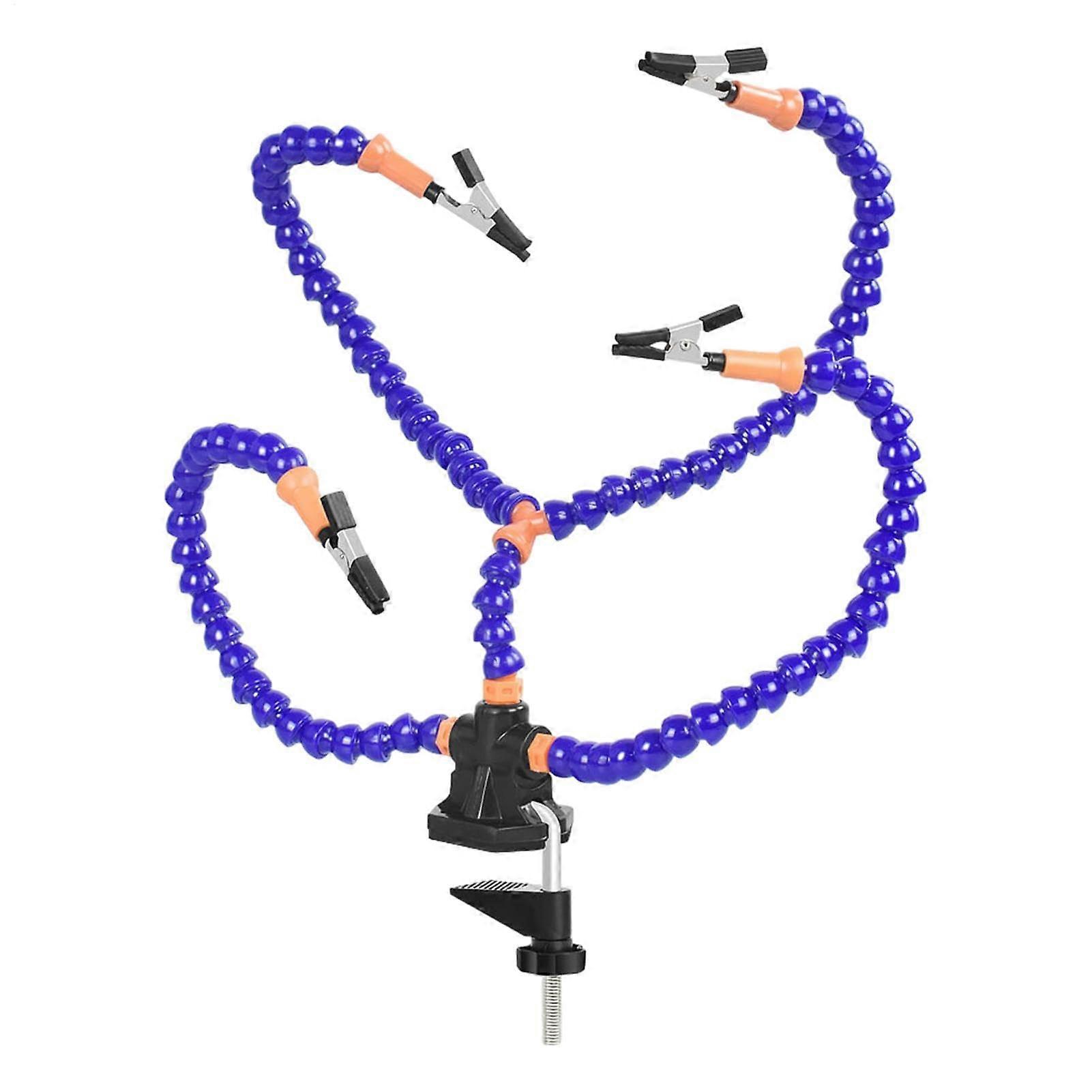 PCB Holder Hands Third Hand Soldering Tool, Four Flexible Arms, Base, Rotating Clips, Blue Organizer for Electronics