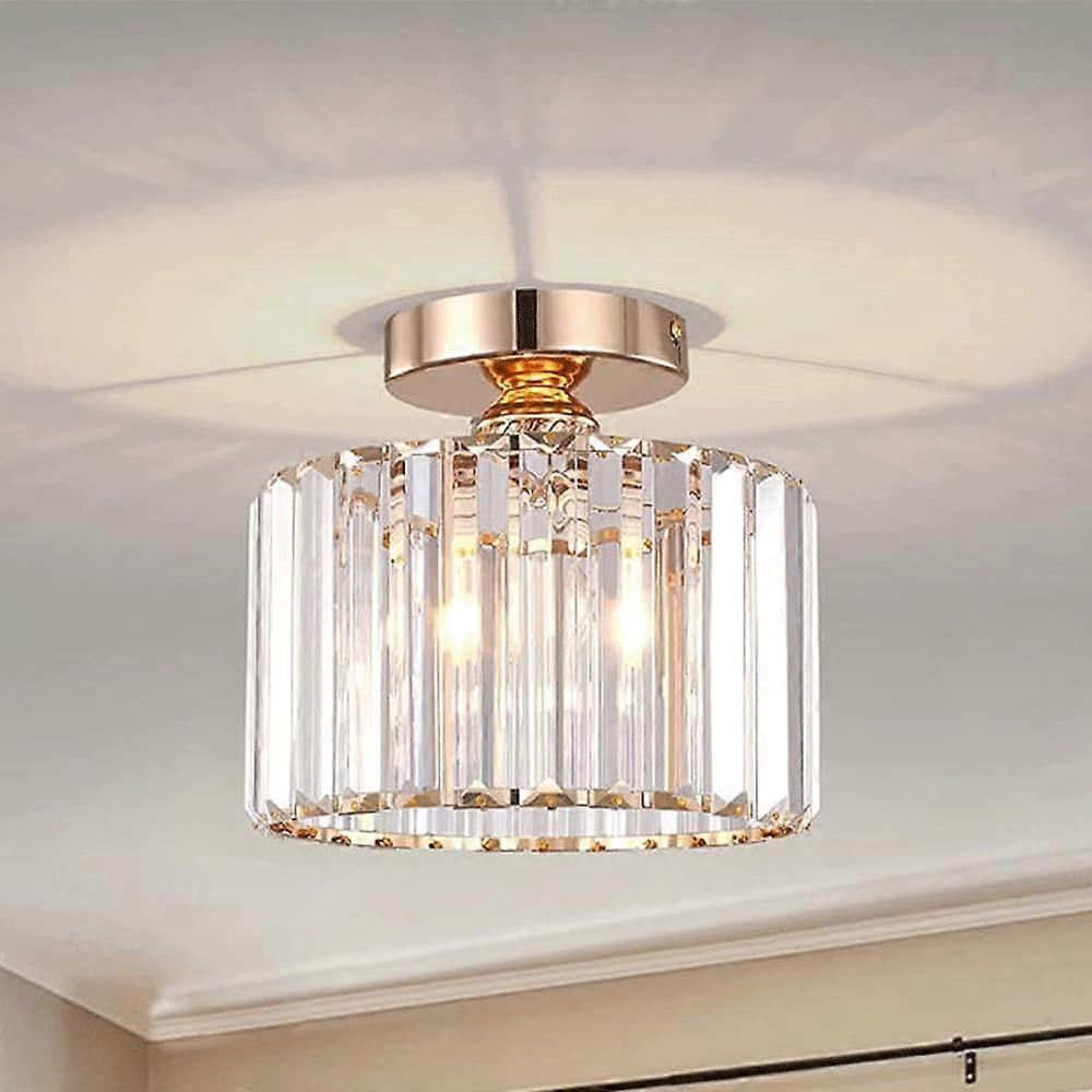 Semi Flush Mount Crystal Ceiling Light Nordic Modern Style Iron Lamp Base Round Crystal Lamps Gold 3Color Dimmable