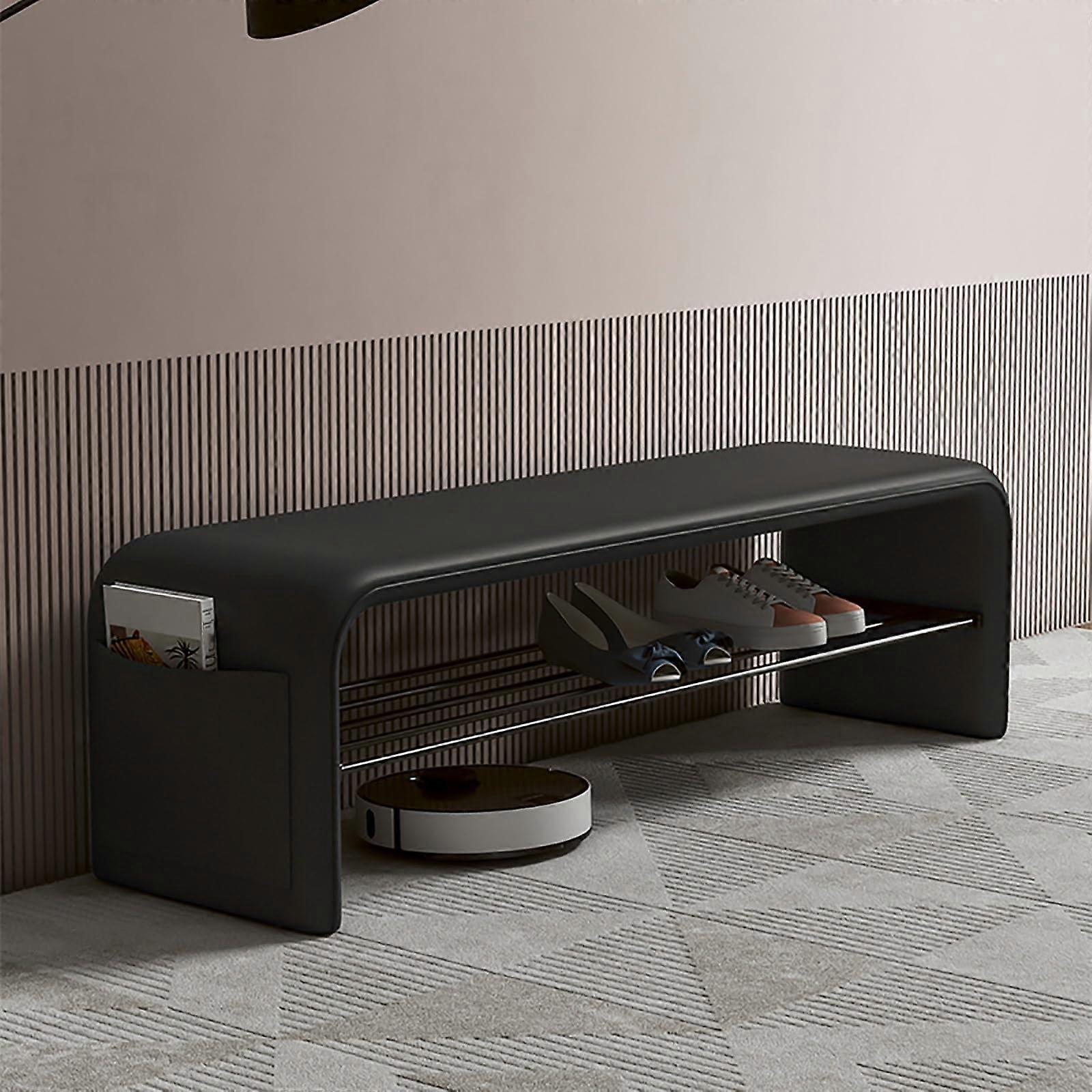 MidCentury Modern Armless Entryway Bench, Upholstered Kitchen Seat, Hallway & EndofBed Bench, Black, 100x35x42 cm