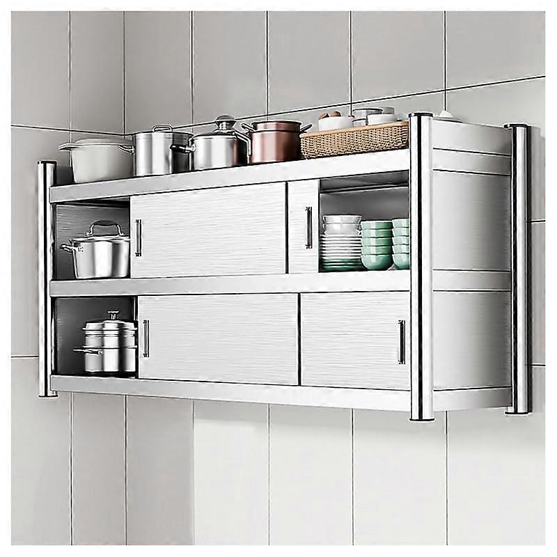 Stainless Steel Wall Storage Cabinet HeavyDuty WallMounted Kitchen Shelf With Sliding Door Silver 150x30x75 cm