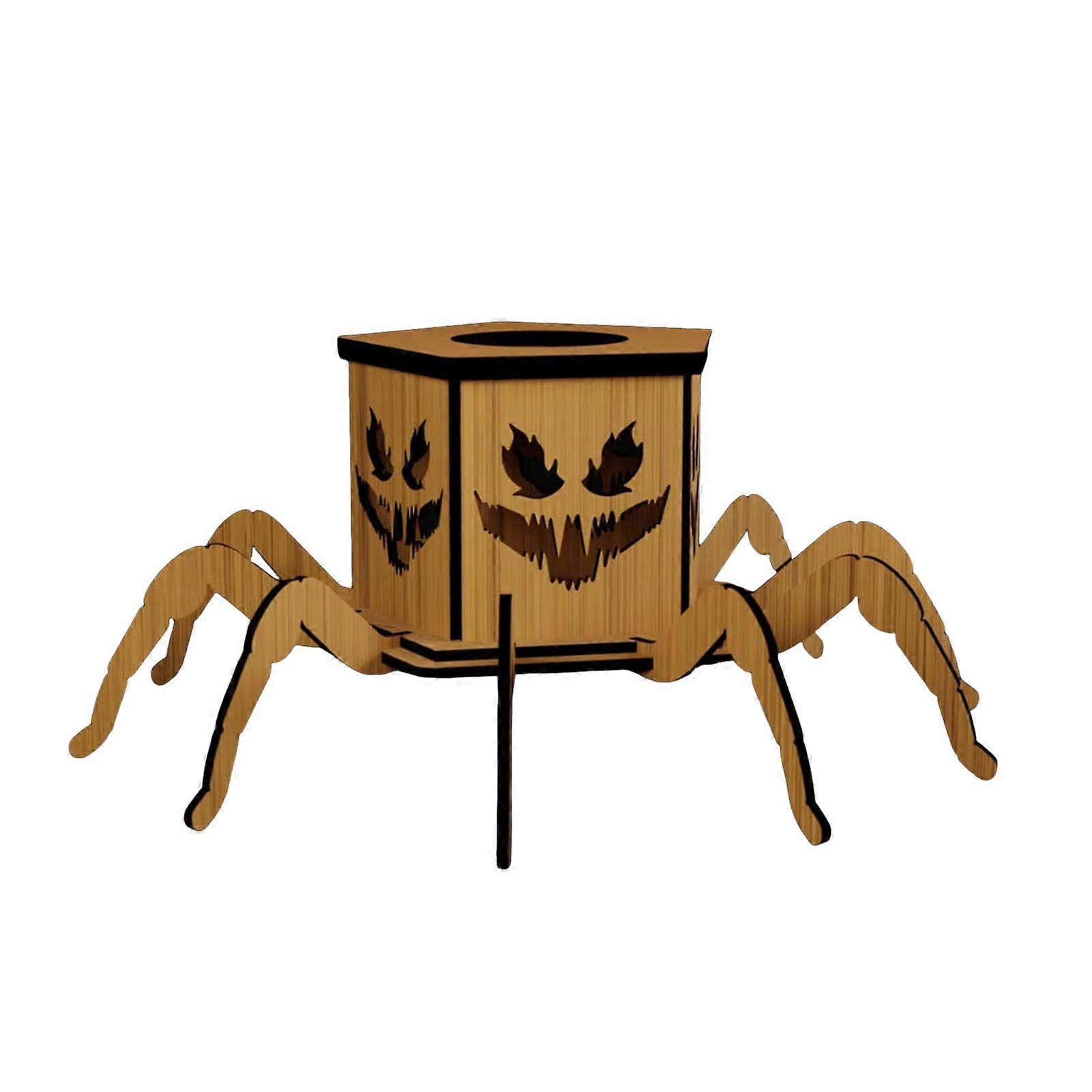 Jikaixiang Halloween Lighted Pumpkin Lantern LED Wooden Spider Pumpkin Lamp with Spooky Face for Halloween Party Home Yard Decor