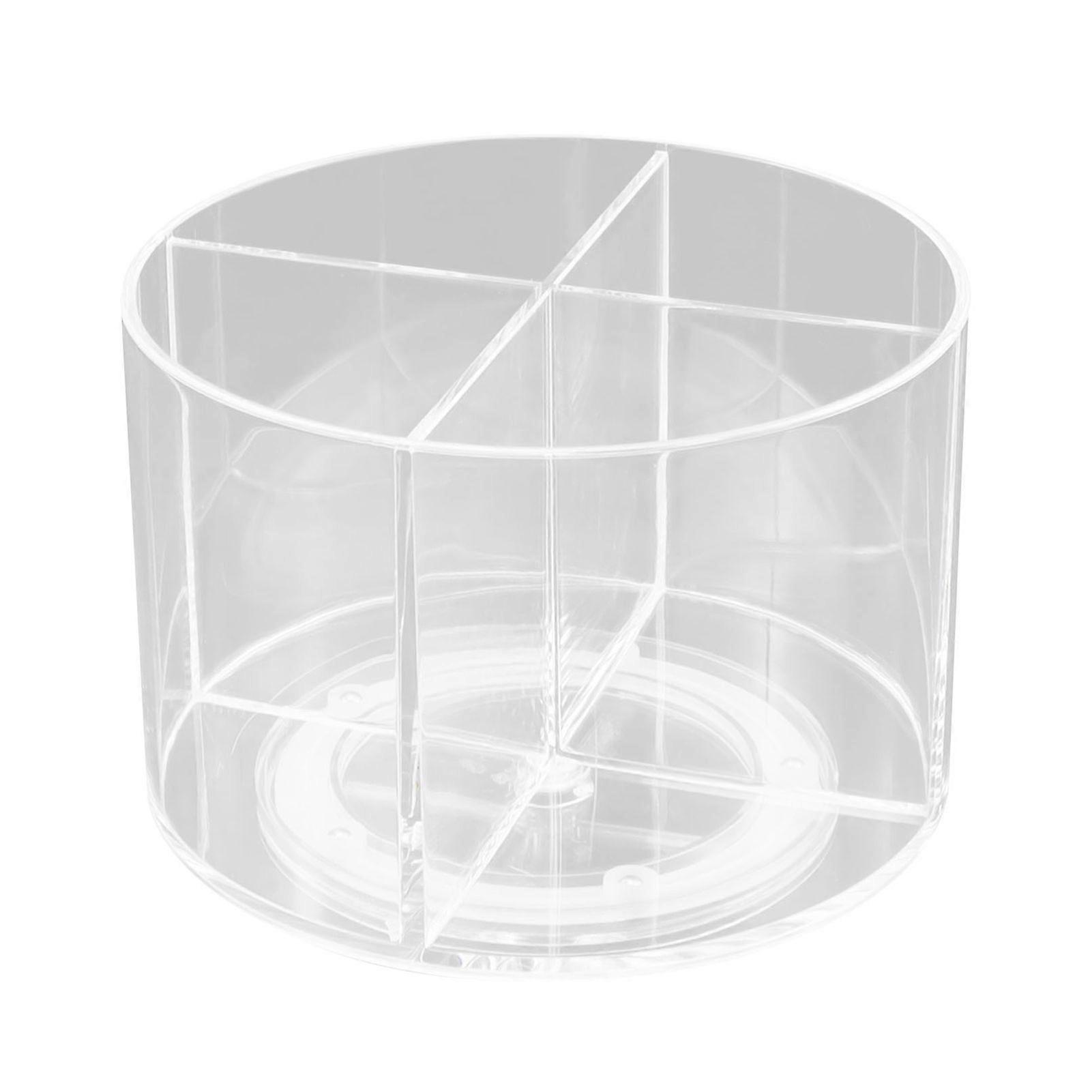 Jikaixiang 360 Degree Rotating Pen Holder Transparent Desk Pencil Organizer with 4 Compartments Acrylic Marker Caddy for Office Home School Supplies