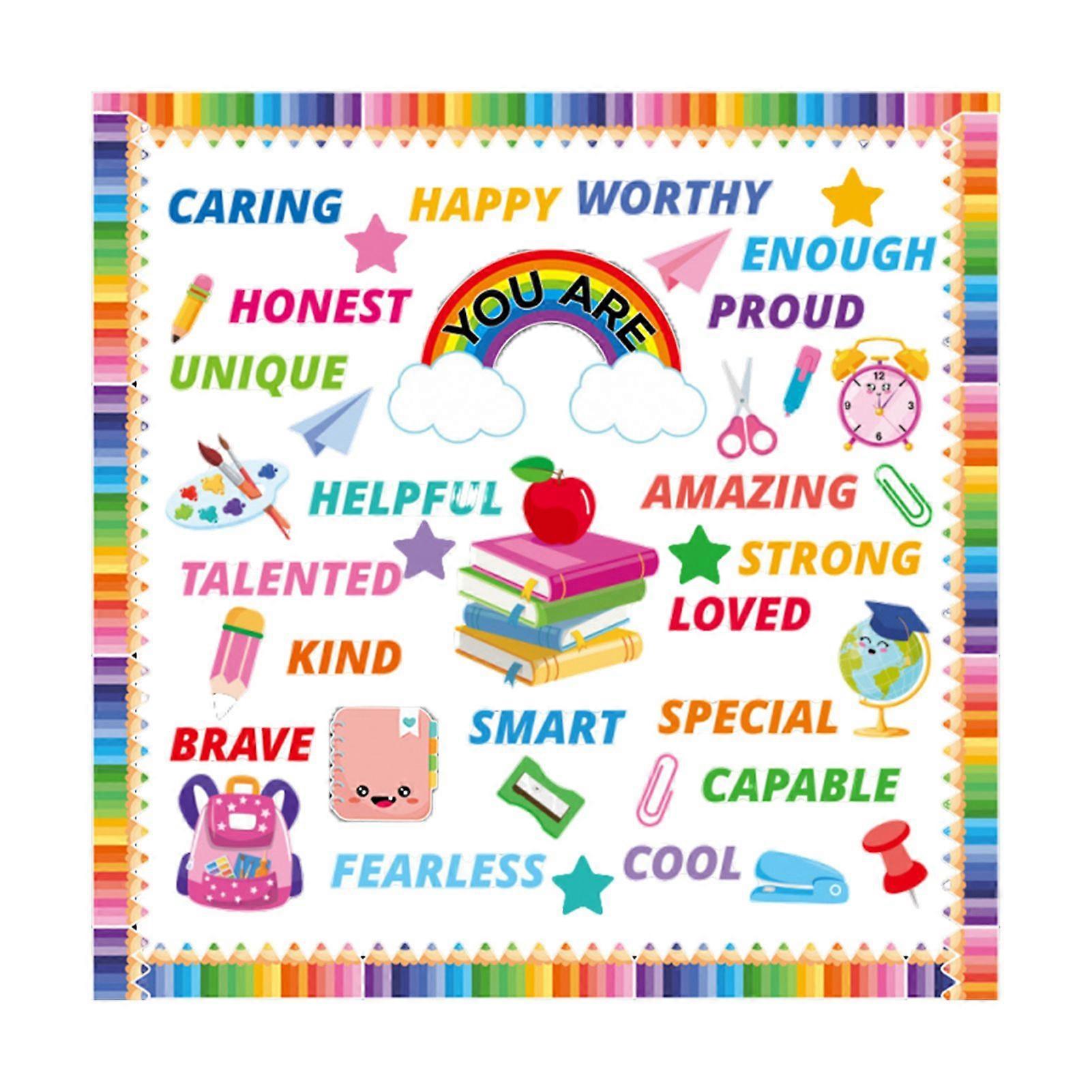 Jikaix 88Pcs/Set Back to School Bulletin Board Decoration Rainbow Book Pencil Notebook Letter Wall Sticker Welcome Party Blackboard Background Decor
