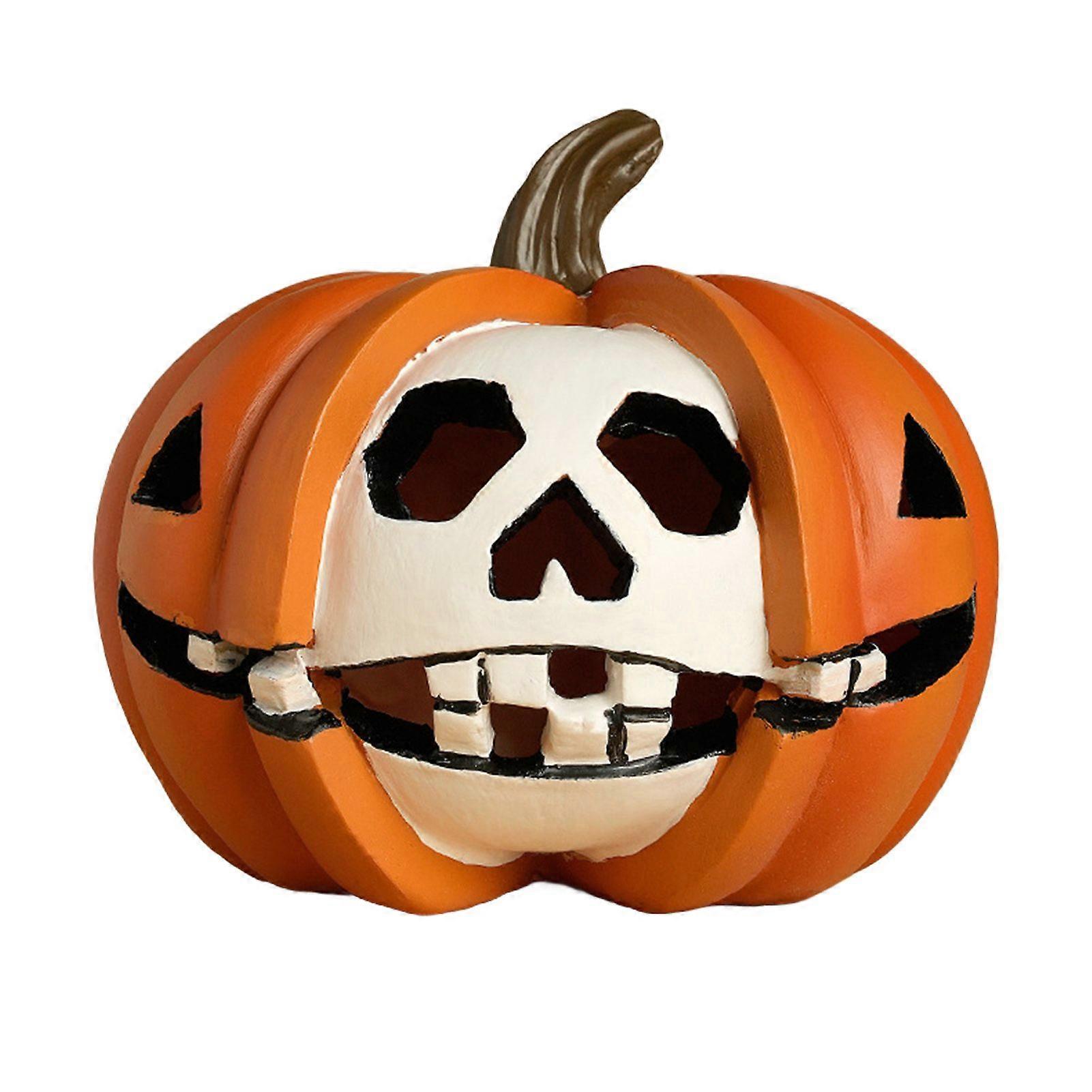 Jikaixiang Halloween Pumpkin Statue Spooky Skull Pumpkin Sculpture Resin Tabletop Ornament for Dining Table Living Room Office Shelf Decor