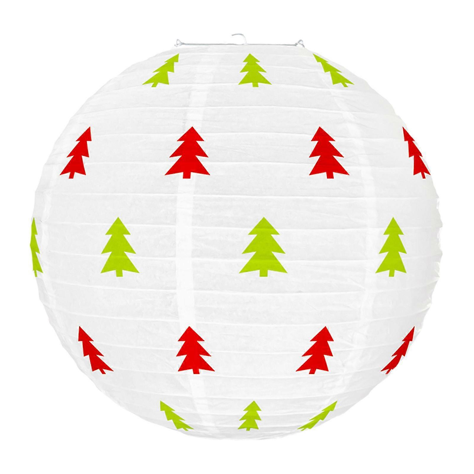 Jikaixiang Red And Green Paper Lantern 12 Inches Christmas Hanging Round Lantern for Indoor Outdoor Holiday Ceiling Decor