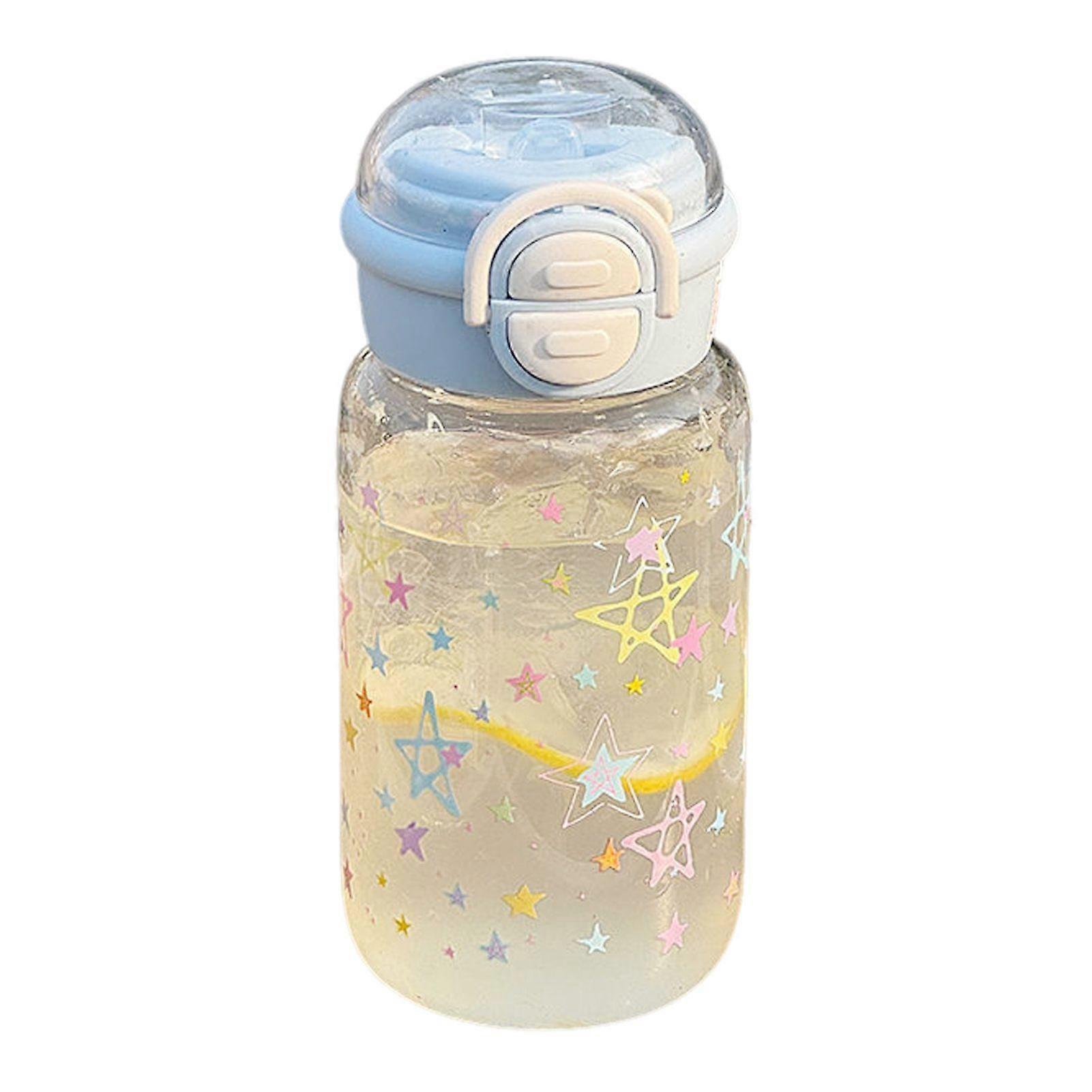 Jikaixiang Cartoon Graffiti Water Cup 600ml Capacity Straw Cup Dual Drinking Lids Water Bottle Transparent Drinking Cup for Travel Classroom