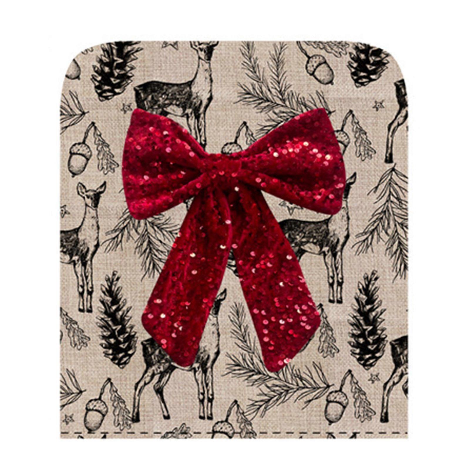 Christmas Chair Cover with Bowknot Decorative Winter Chair Back Cover Deer Print Festive Holiday Home Decor
