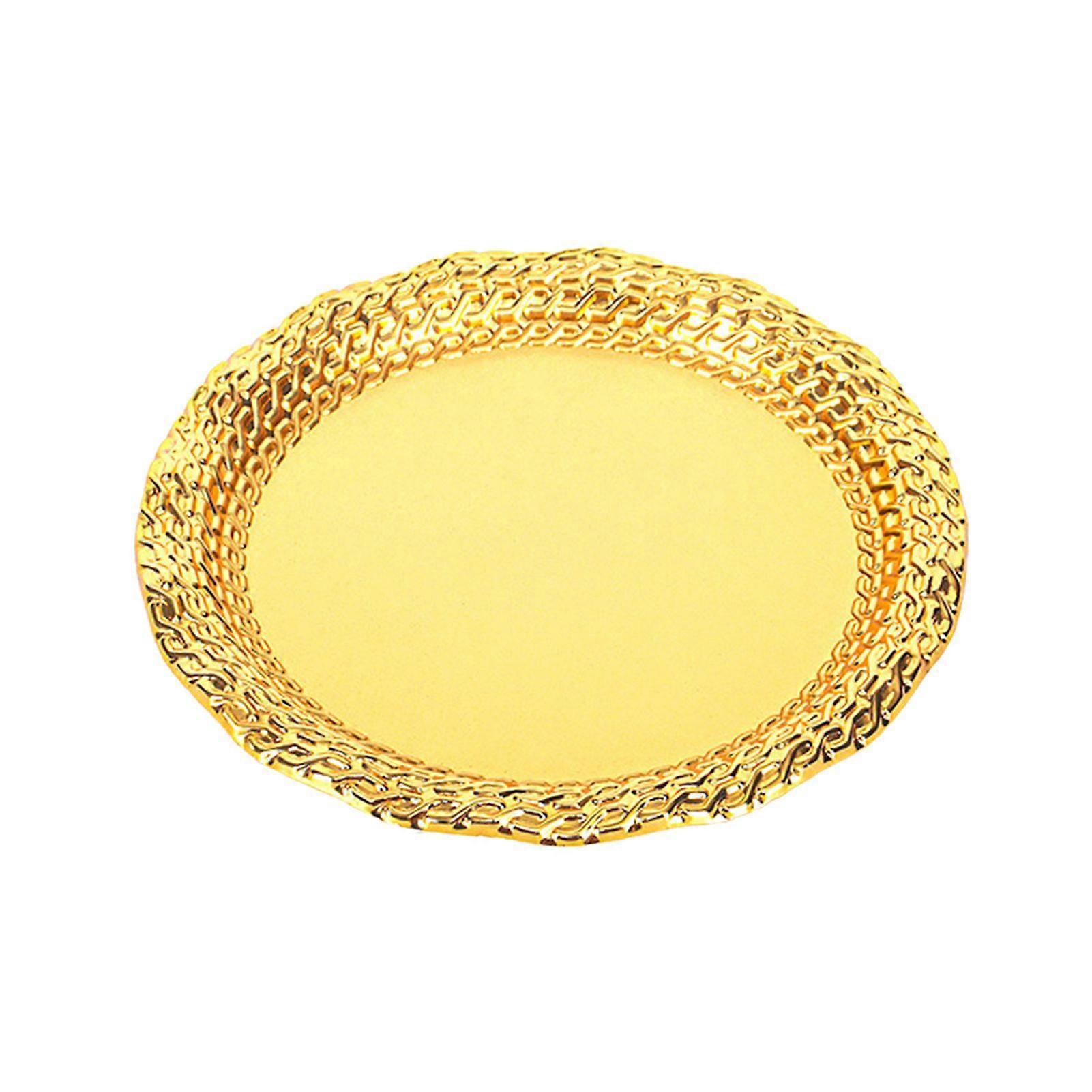Vintage Round Metal Tray Retro Decorative Display Plate Flat Bottom Serving Platter for Jewelry Storage Snacks Cake Coffee Coaster