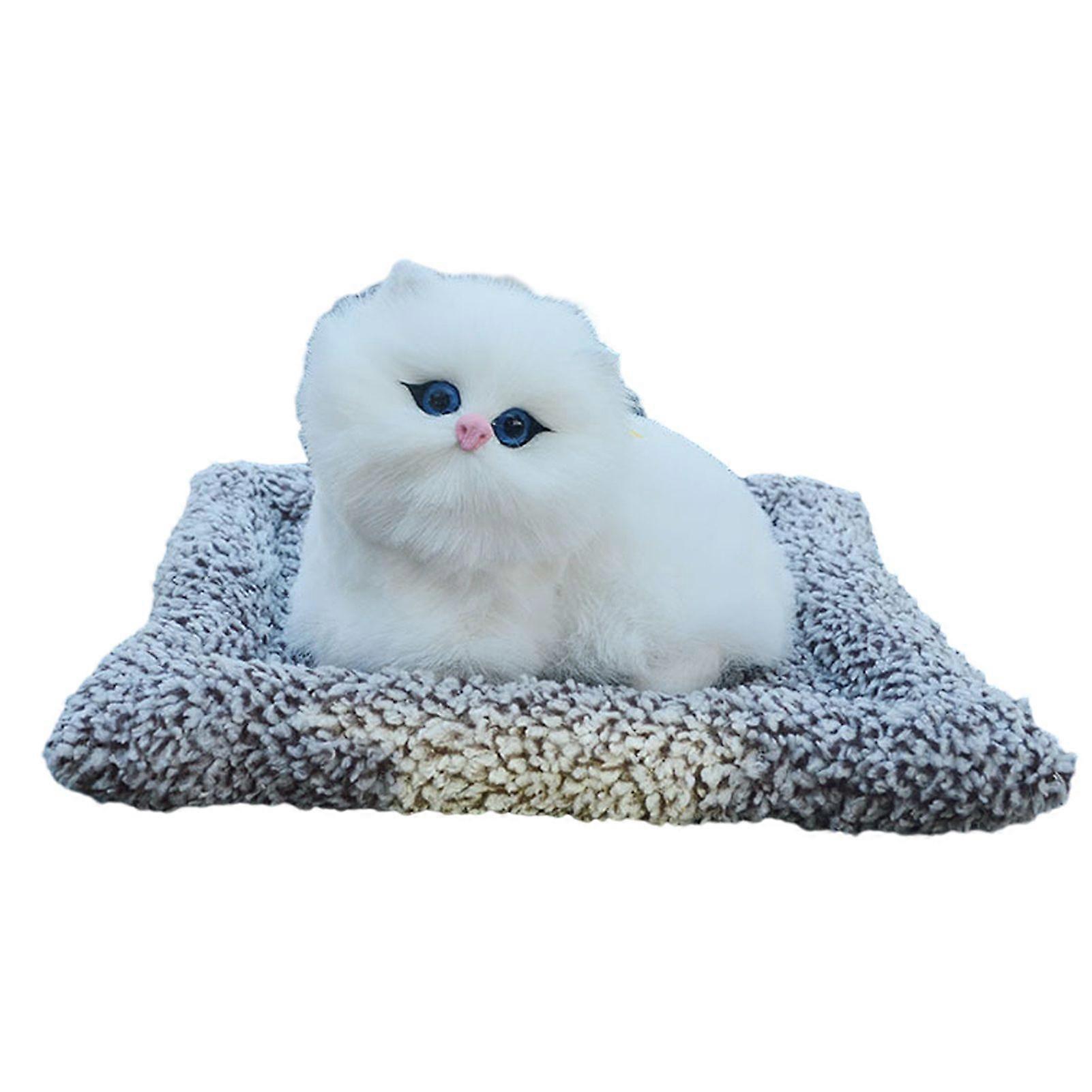 Jikaixiang Simulated Cat Toy with Bamboo Charcoal Mat Odor Removal Meowing Plush Kitten Stuffed Animal Doll Home Office Desktop Decoration Ornament