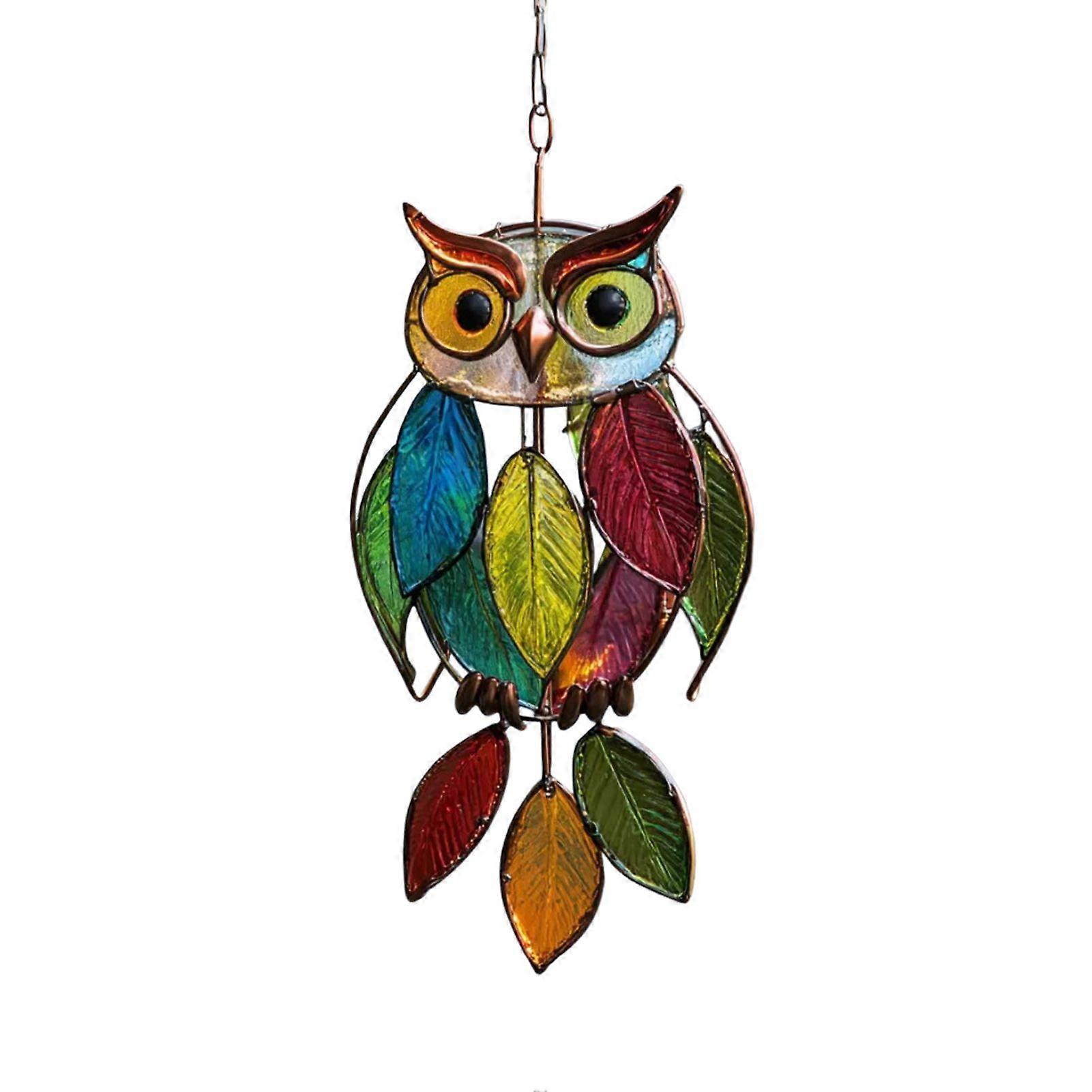 Jikaixiang Owl Pendant Outdoor Hanging Decoration Realistic Looking Simple Installation Colorful Handmade Stained Owl Ornament
