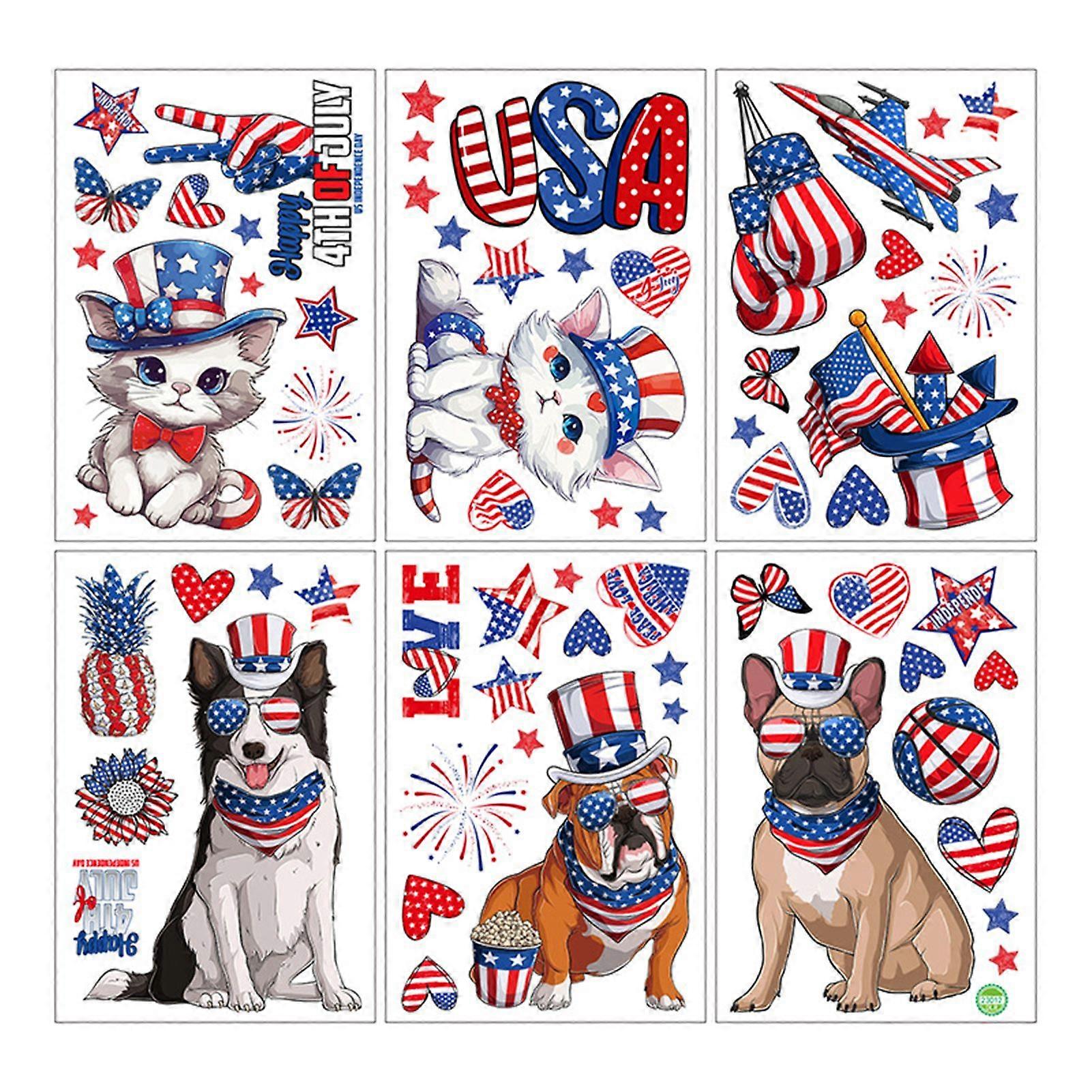 Jikaixiang 6Pcs Independence Day Static Stickers Easy to Apply Reusable Window Decals July 4th Indoor Outdoor Patriotic Decoration