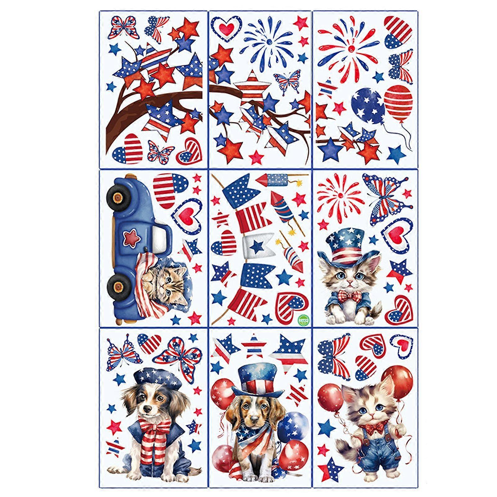 Jikaixiang 9Pcs Independence Day Stickers Double-Sided Design Stars Stripes Elements Easy to Use July 4 Patriotic Window Decoration