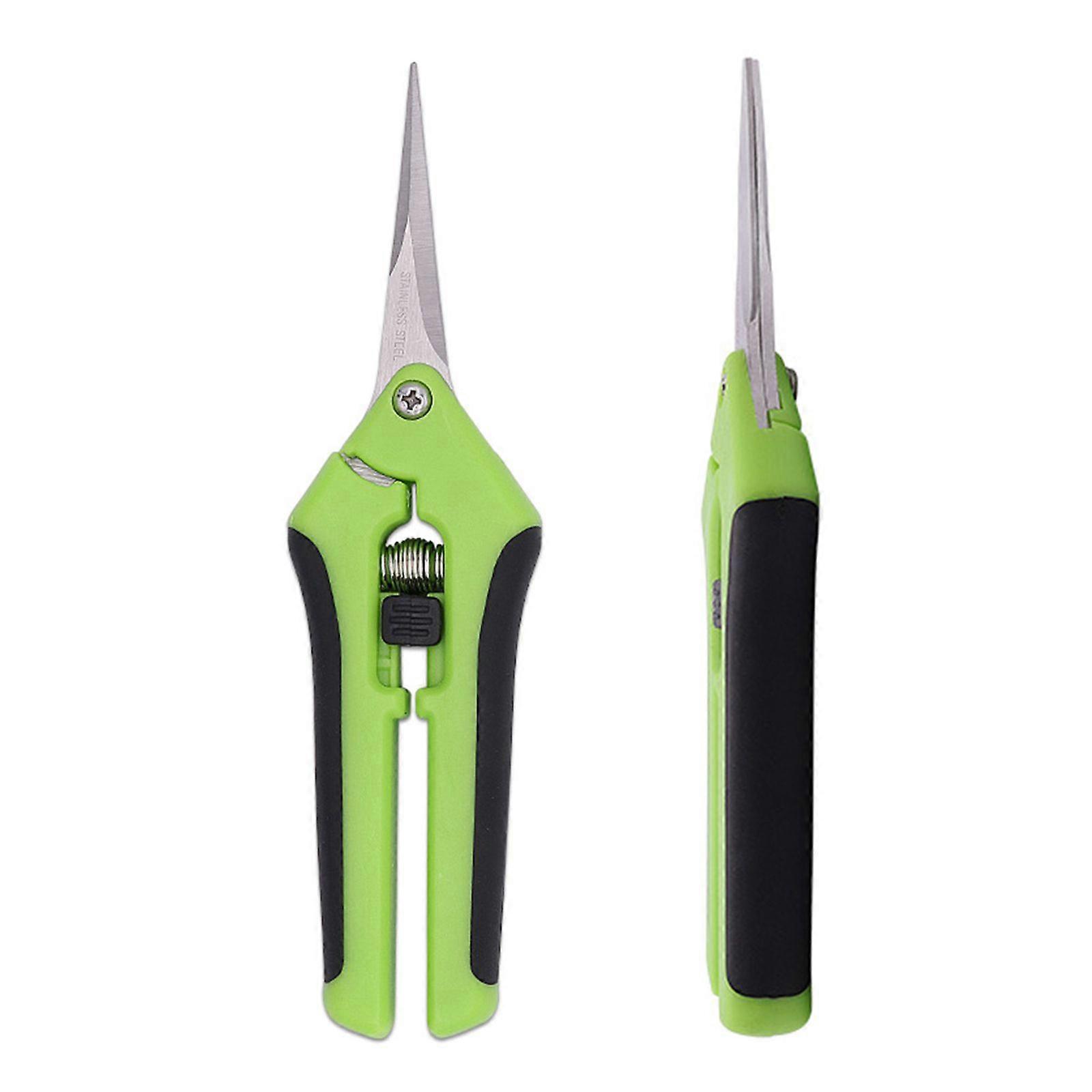 Features 1. Multi functional: Perfect for trimming leaf buds, branches, roots, etc., it can be cut deep into areas that are difficult to reach. 2. Applicable scenarios: Suitable for both garden and home use. 3. Material: Made of high-quality stainless steel sharp blades and PP+TPR handle, with a long service life. 4. Ergonomic handle: Anti slip design provides a comfortable grip. Specifications Product dimensions: length 165mm, width 45mm Material: Stainless steel/PP+TPR Cutting thickness: 2.5mm Usage: Fruit and vegetable picking, melon and fruit pruning Specification: Straight head, Package Include: 1 * Stainless steel fruit branch scissors