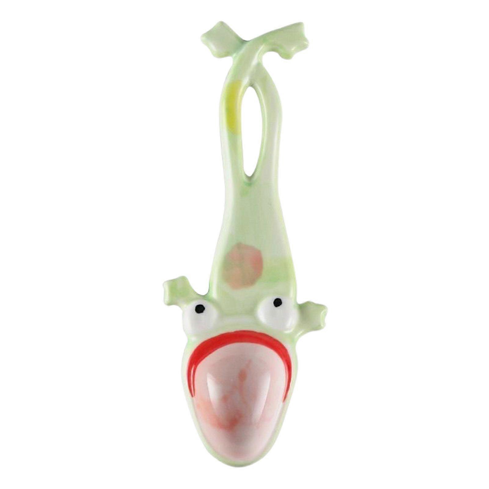 Jikaixiang 1/2Pcs Ugly Big Mouth Frog Ceramic Spoon Long Leg Frog Spoon Mixing Tool Humorous Kitchen Tabletop Accessory