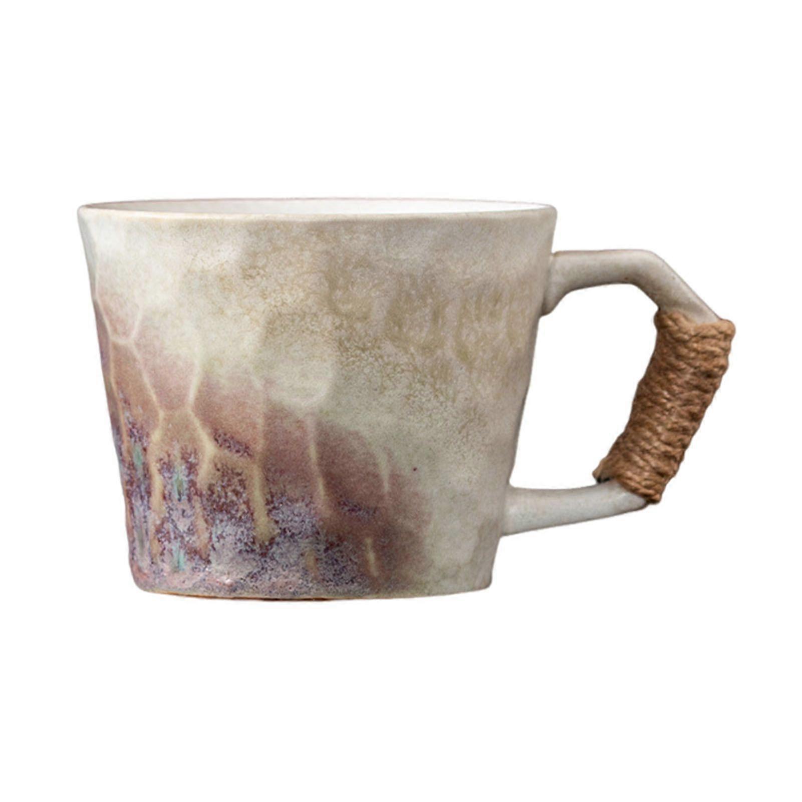 Jikaixiang 350ml Ceramic Mug Tea Coffee Cup Spiral Hemp Rope Vintage Office Mug Water Cup Household Decoration Handmade Gift Mug