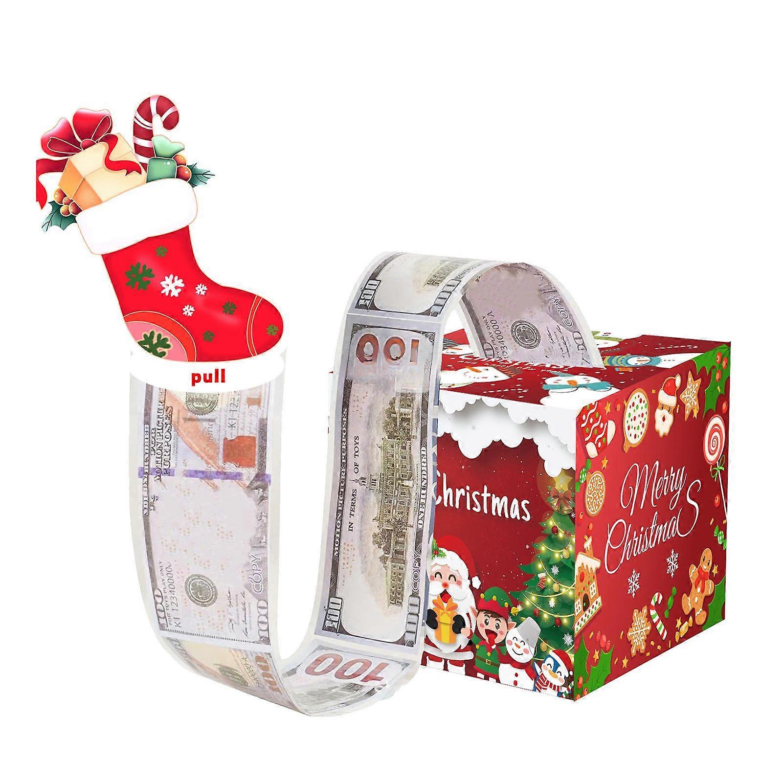 Jikaixiang Christmas Money Box Pull-out Cash Gift Box DIY Holiday Money Gift Box with Transparent Bags Christmas Money Holder Pull Box for Kids Adults